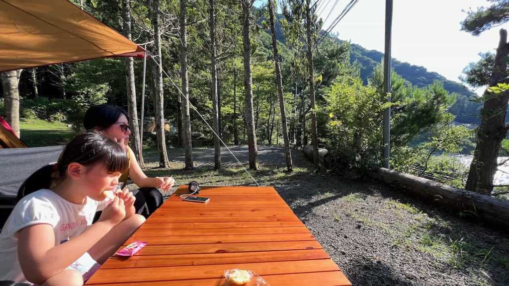 カヌーの後、テントに戻りチェックイン時にもらったおやつを食べました。