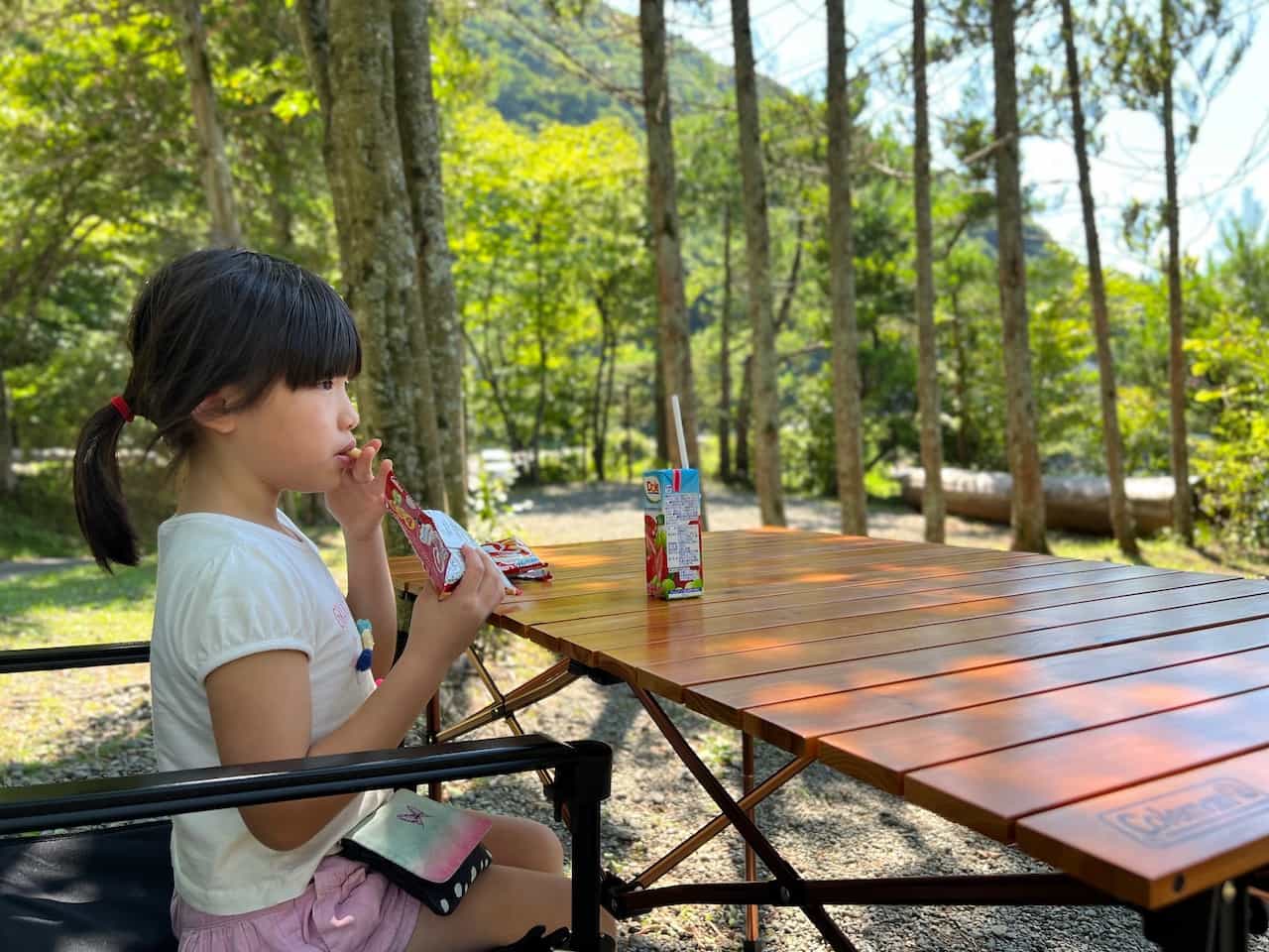 カヌーの後、テントに戻りチェックイン時にもらったおやつを食べました。