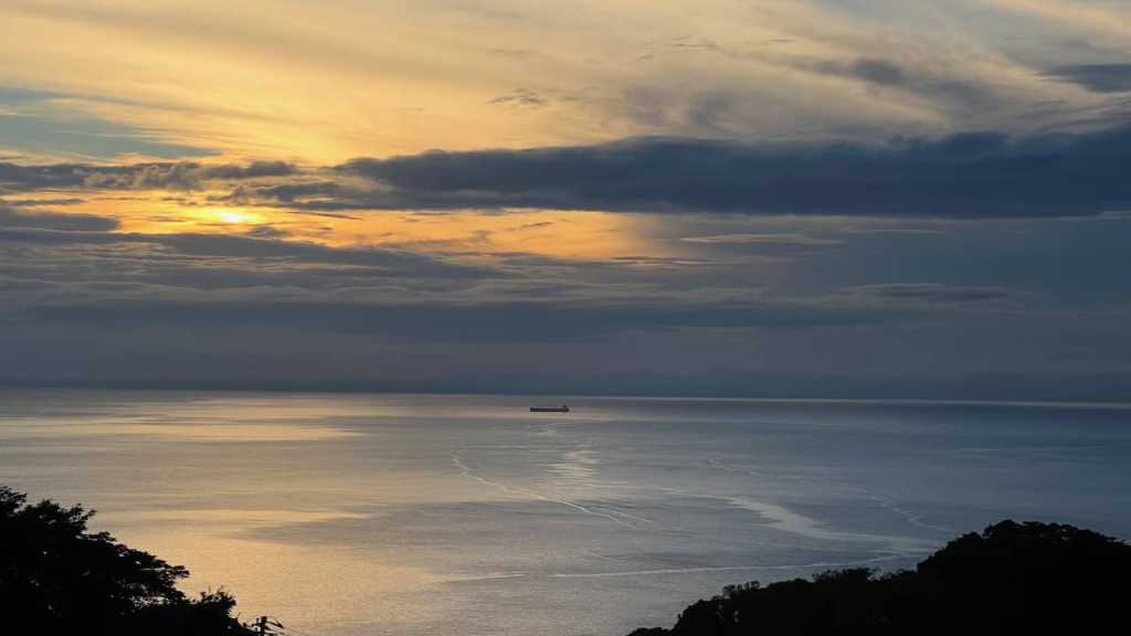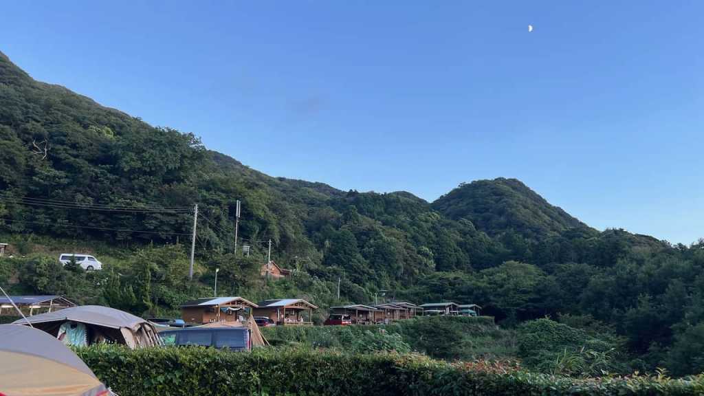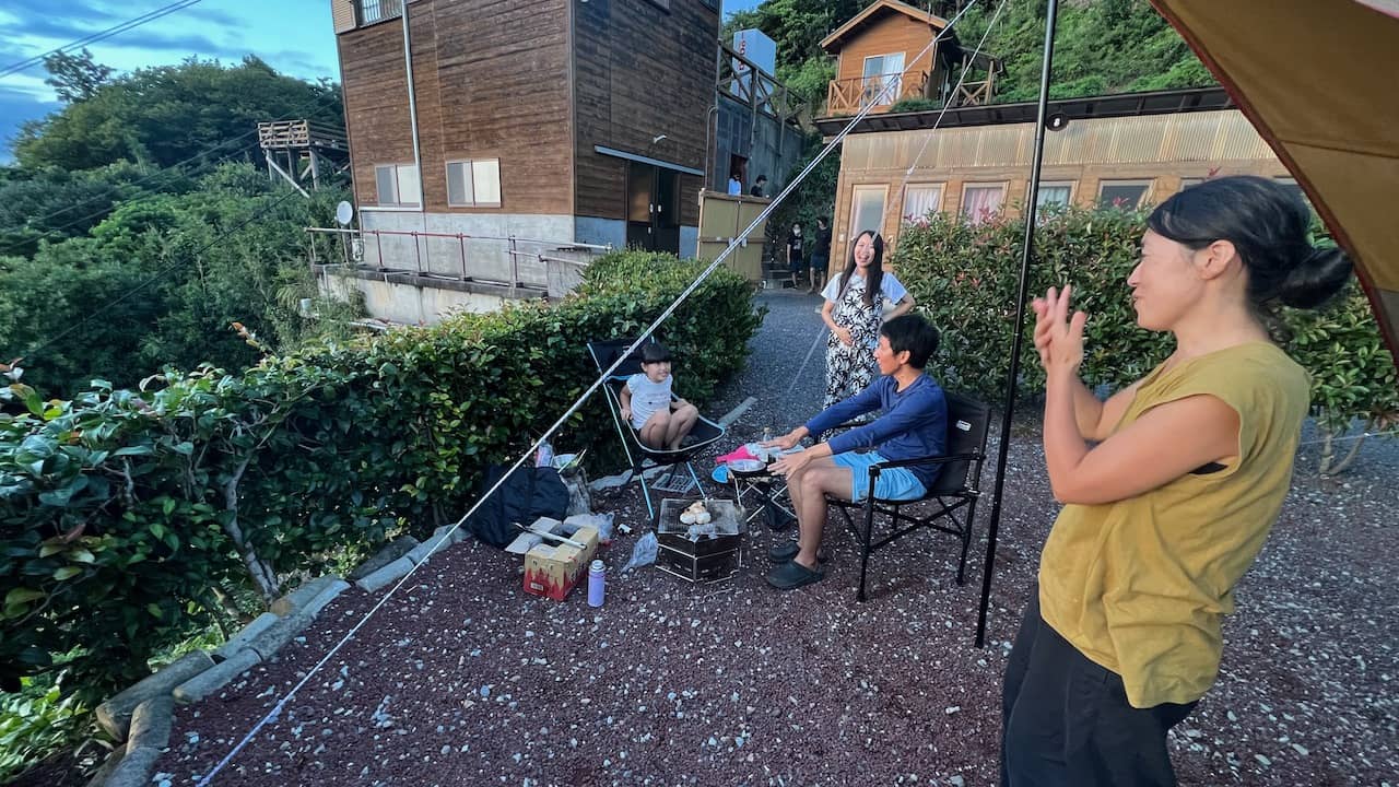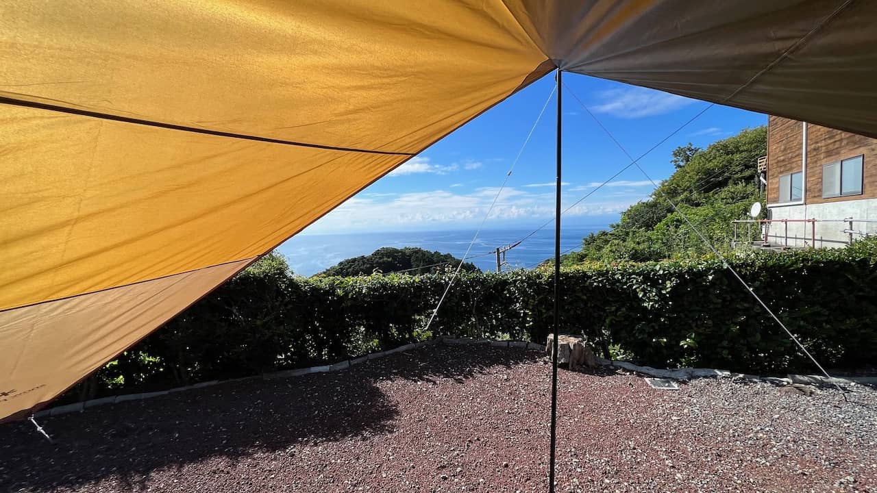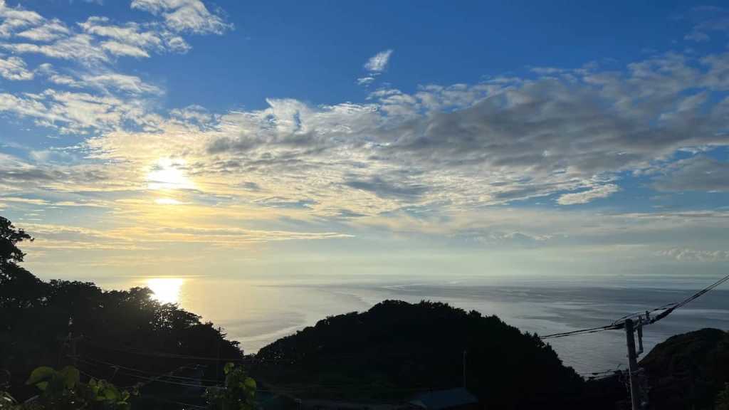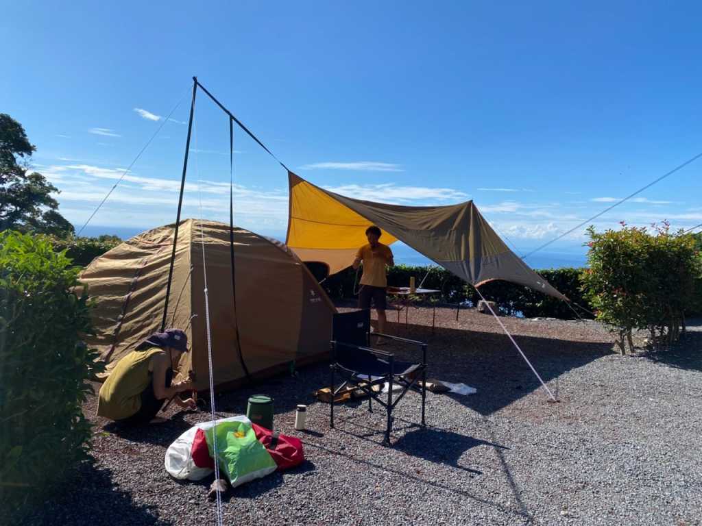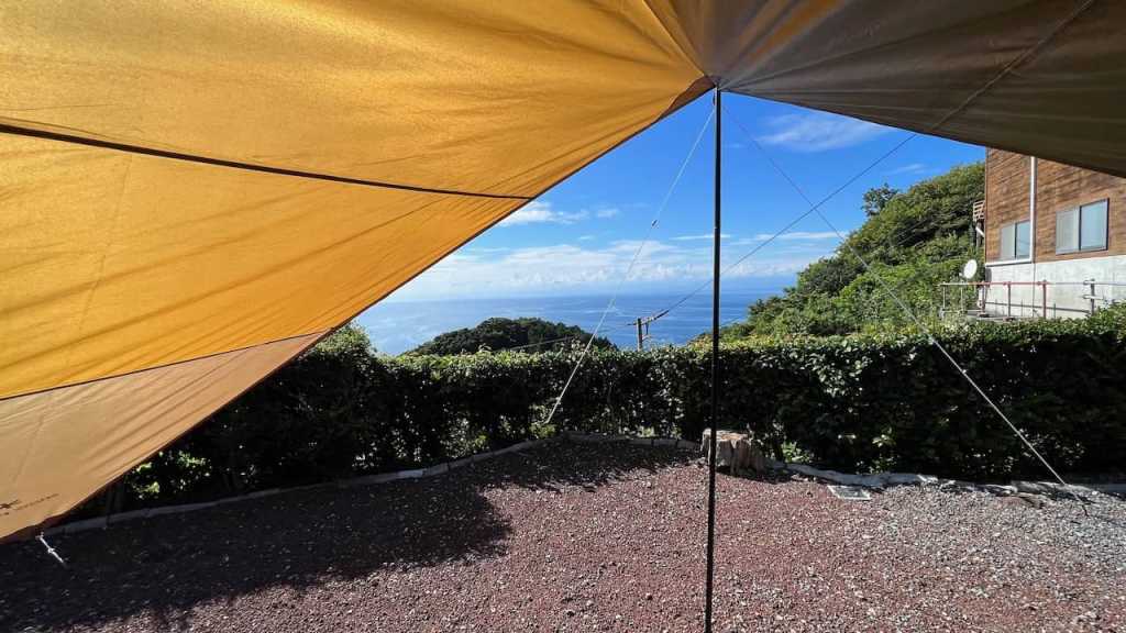 西伊豆にあるキャンプ場で夕日が海に落ちるのがキレイに見えました。