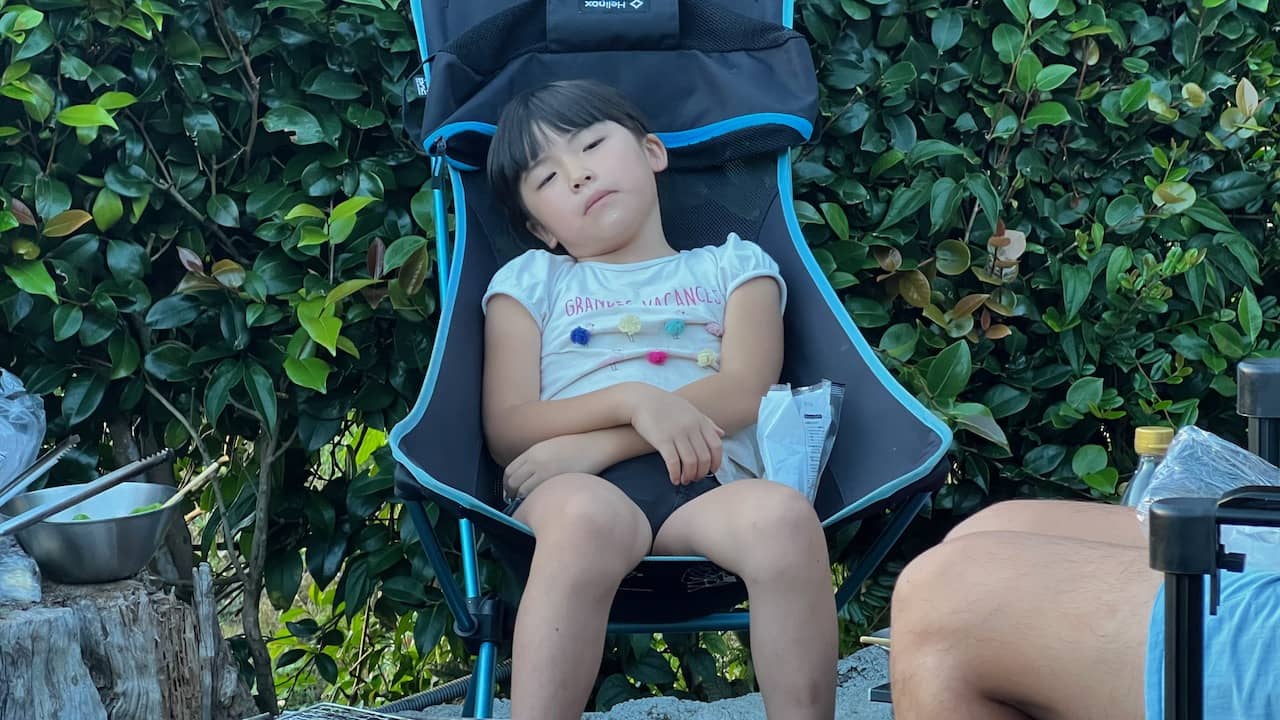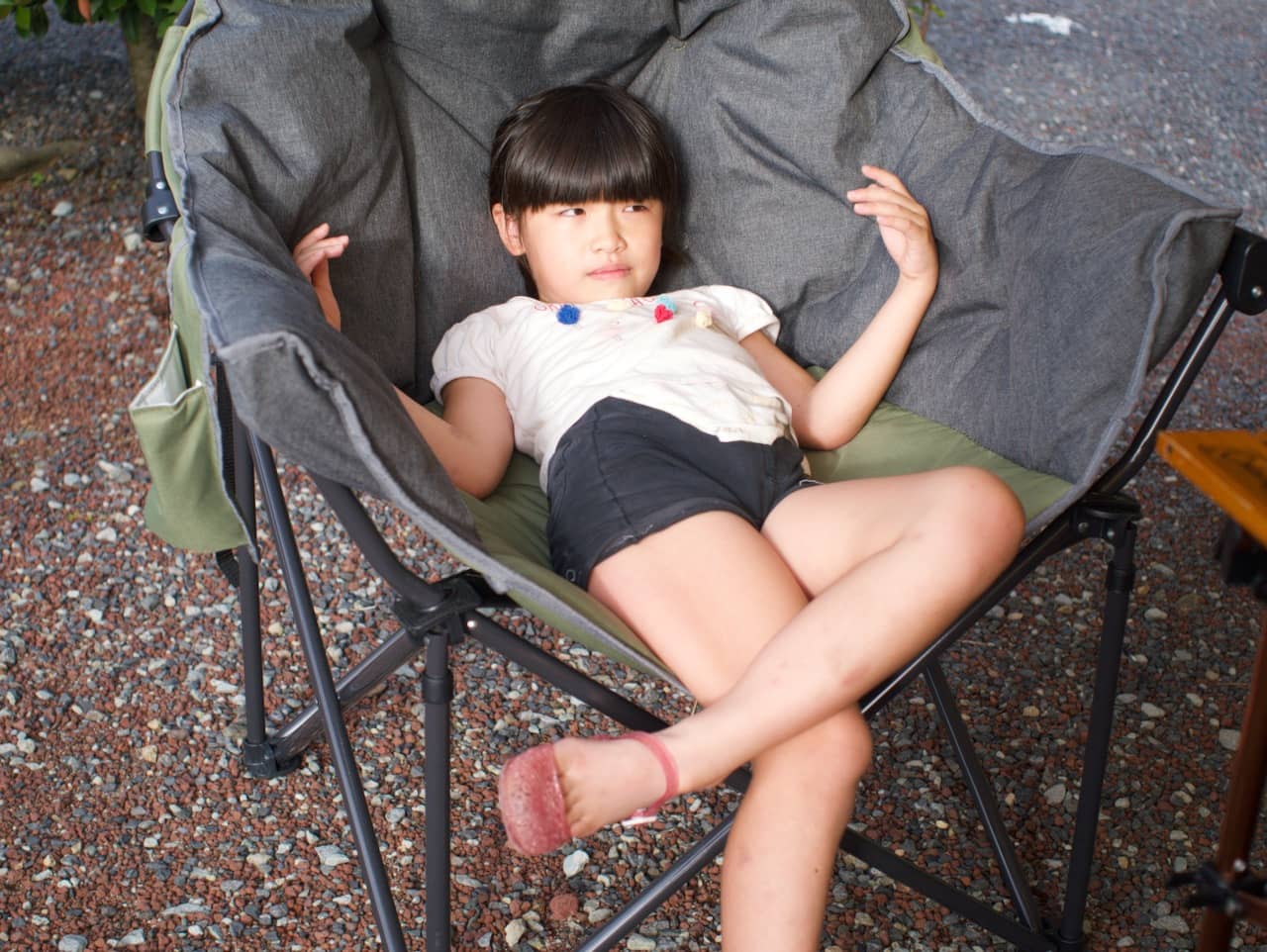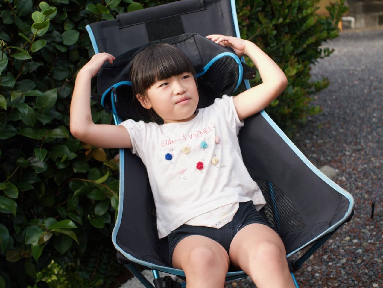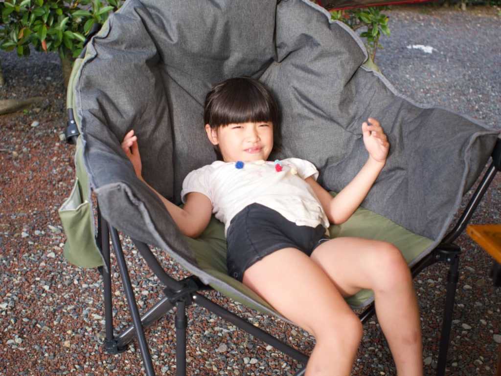 めいさんはチェアでくつろいでいます。