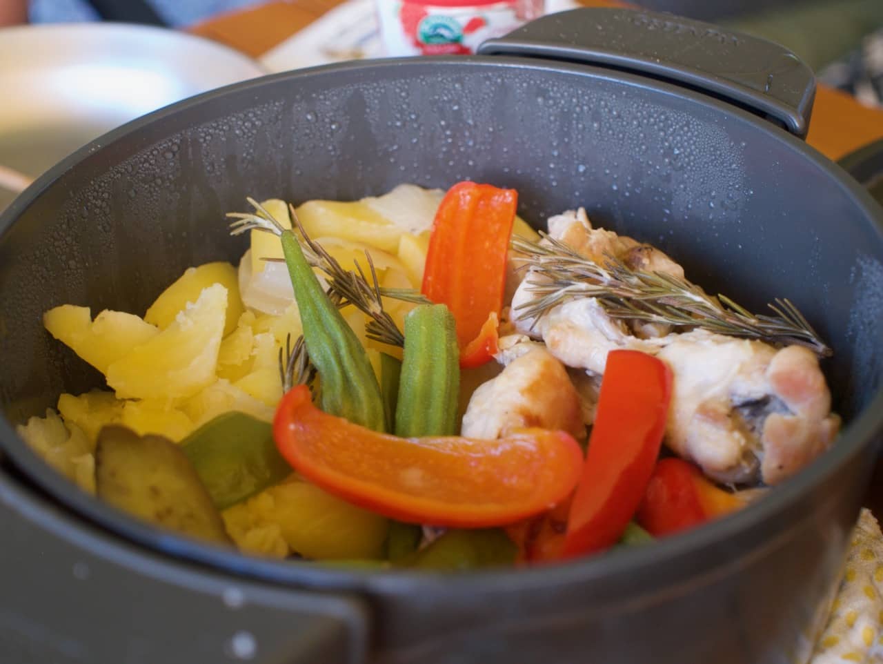 葉子ちゃんお手製の鶏肉とジャガイモ、畑の夏野菜のロースト。