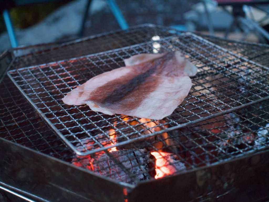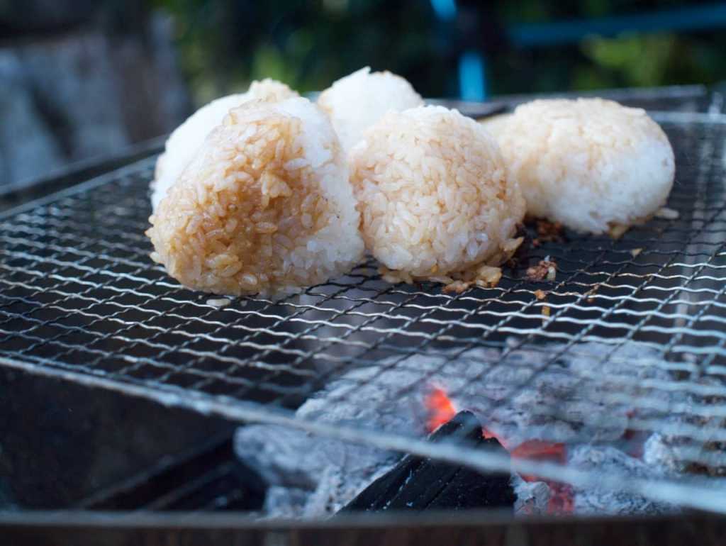 〆の焼きおにぎりとイカの一夜干し。