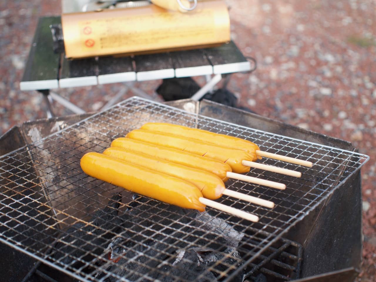 フランクフルトがいい感じに焼けてきました。