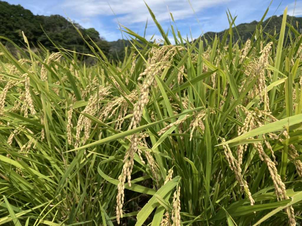 稲穂の頭が垂れています。田んぼの師匠えいじさんとえいじさんのお知り合いの方も「立派な米だよ。いい色してる。」と仰って下さっていました。