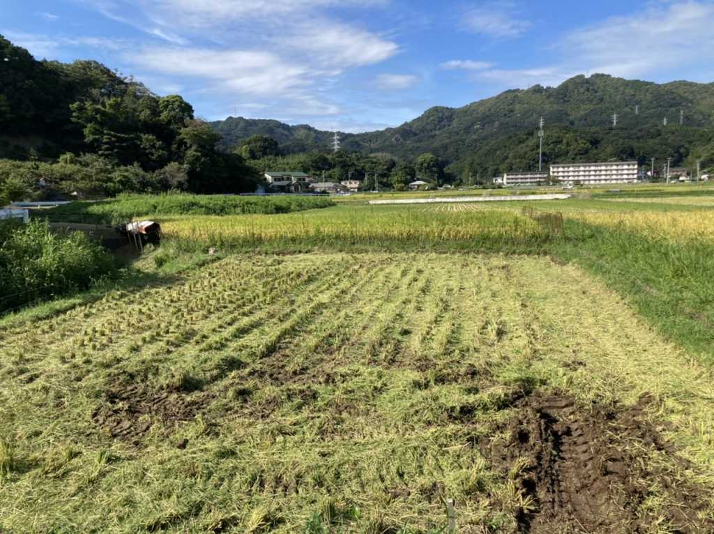 刈取が終わった後の田んぼ。