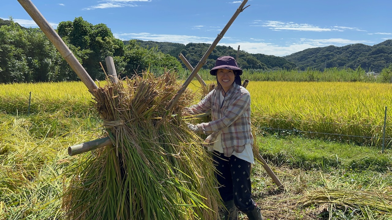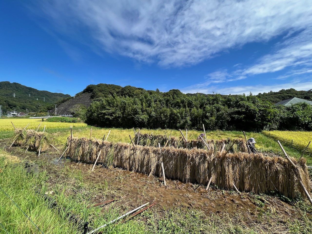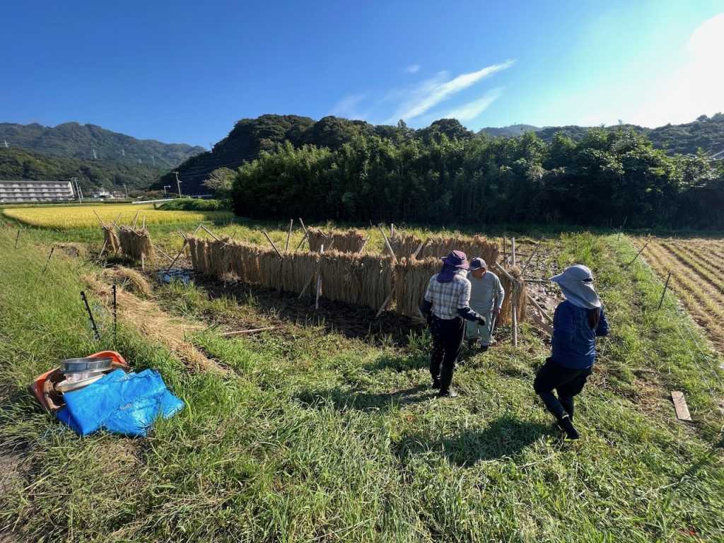 私たちが田植えした田んぼの収穫は無事終わりましたが、別の方が管理されていた田んぼで手刈り体験をさせていただけることになりました。