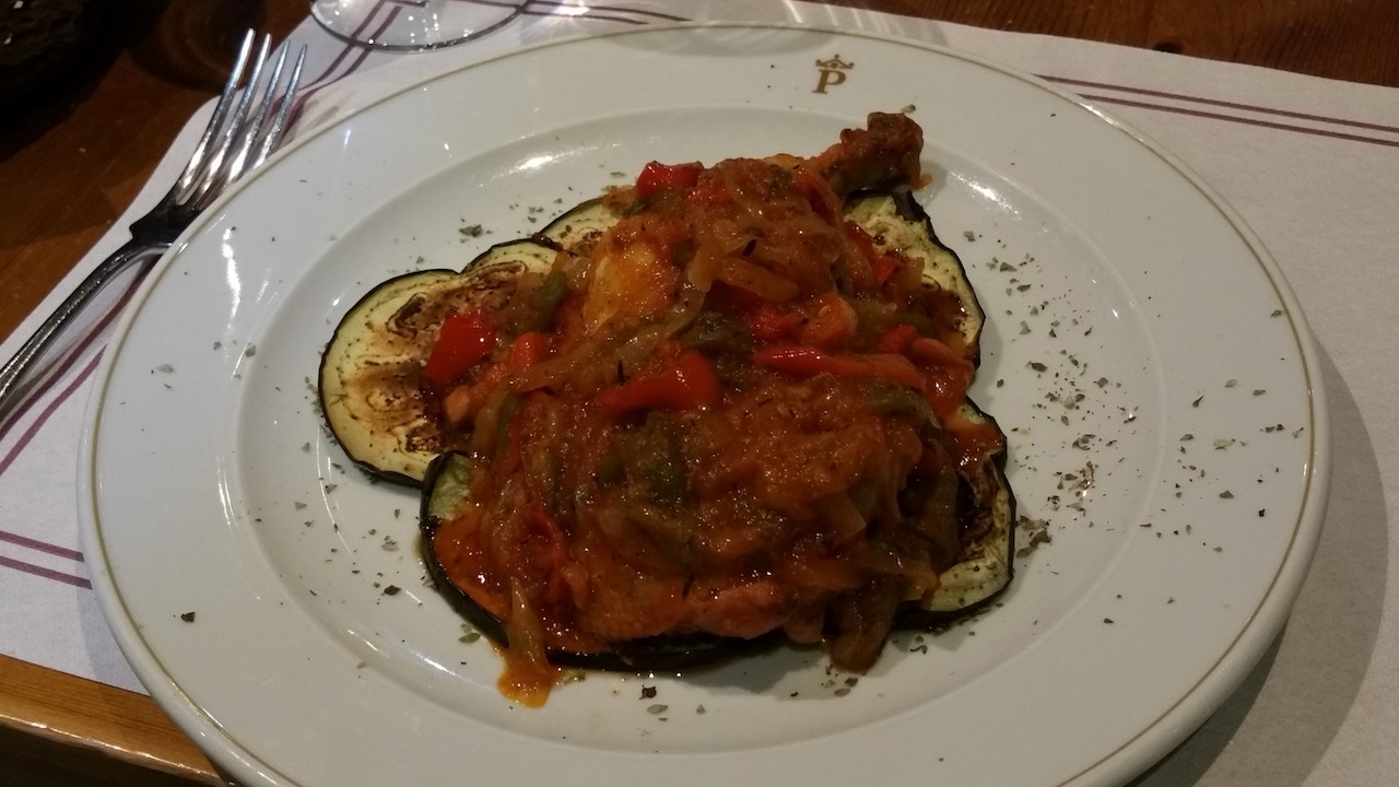 私はお野菜のローストにたっぷり野菜のトマトソース煮込みを頂きました。