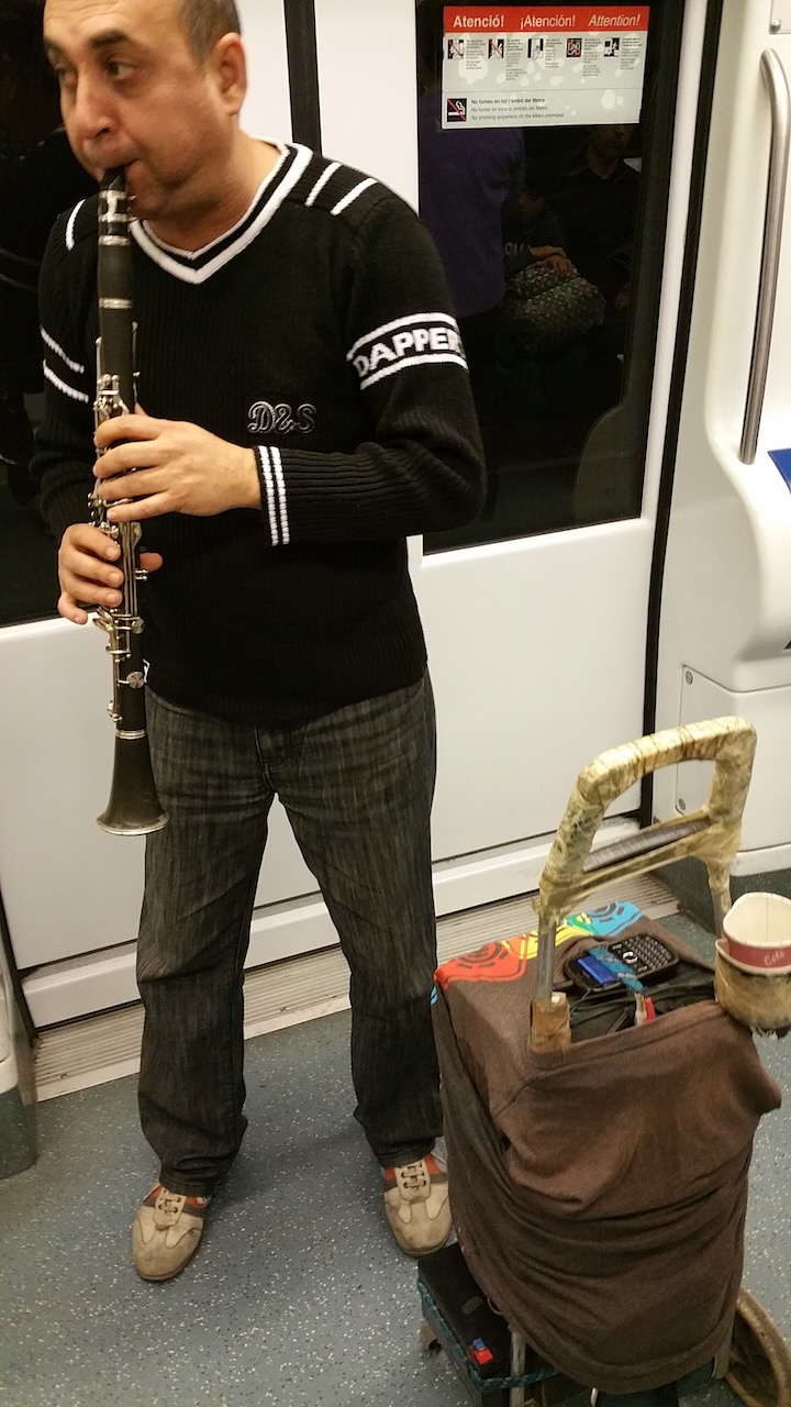 地下鉄の中で演奏する人がいました。スペイン滞在中、色々なところで楽器を演奏する人々やパフォーマンスをする人に出会ったのが印象的でした。