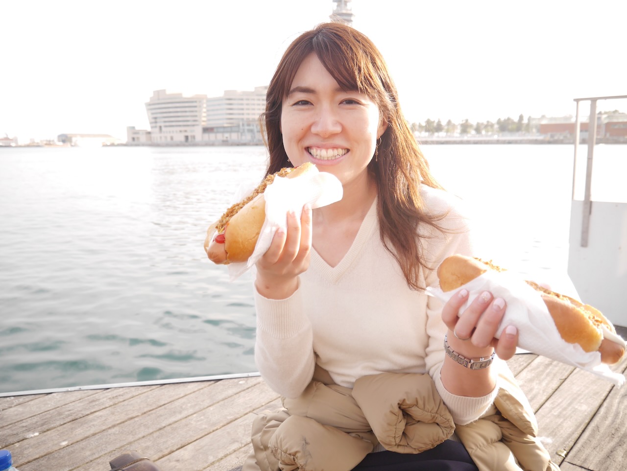 ホットドッグが美味しそうだったので、のんびり海を眺めながらお昼ご飯にしました。