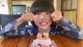 湖畔でピクニックランチ。朝握ったおにぎりをいただきます。お昼ご飯にひとり3個、夜ご飯にひとり2個分おにぎりを握ったのですが、めいさんはお昼ご飯におにぎりを4個も食べました。