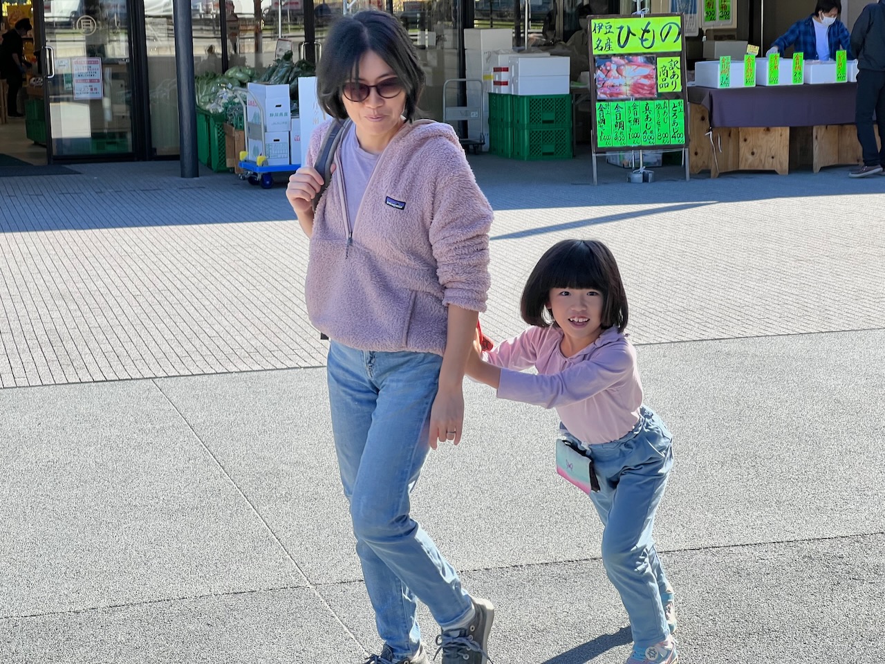 11月2日から11月3日の1泊2日で山梨県にある本栖湖に秋キャンプに行って来ました。道の駅月ヶ瀬でドライブ休憩。めいさんと服装がかぶってしまいました。こうすけくんが「ペアルックみたい。」と言って、確かに色が一緒だなと気づきました。