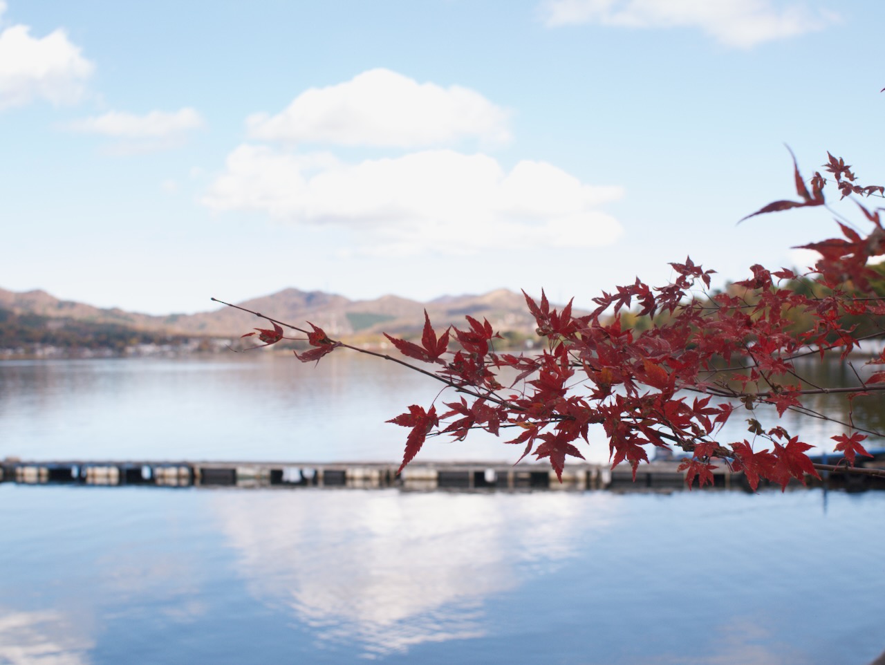 紅葉が空の青に映えてとてもきれいですね!富士山と紅葉と湖の絶景スポット