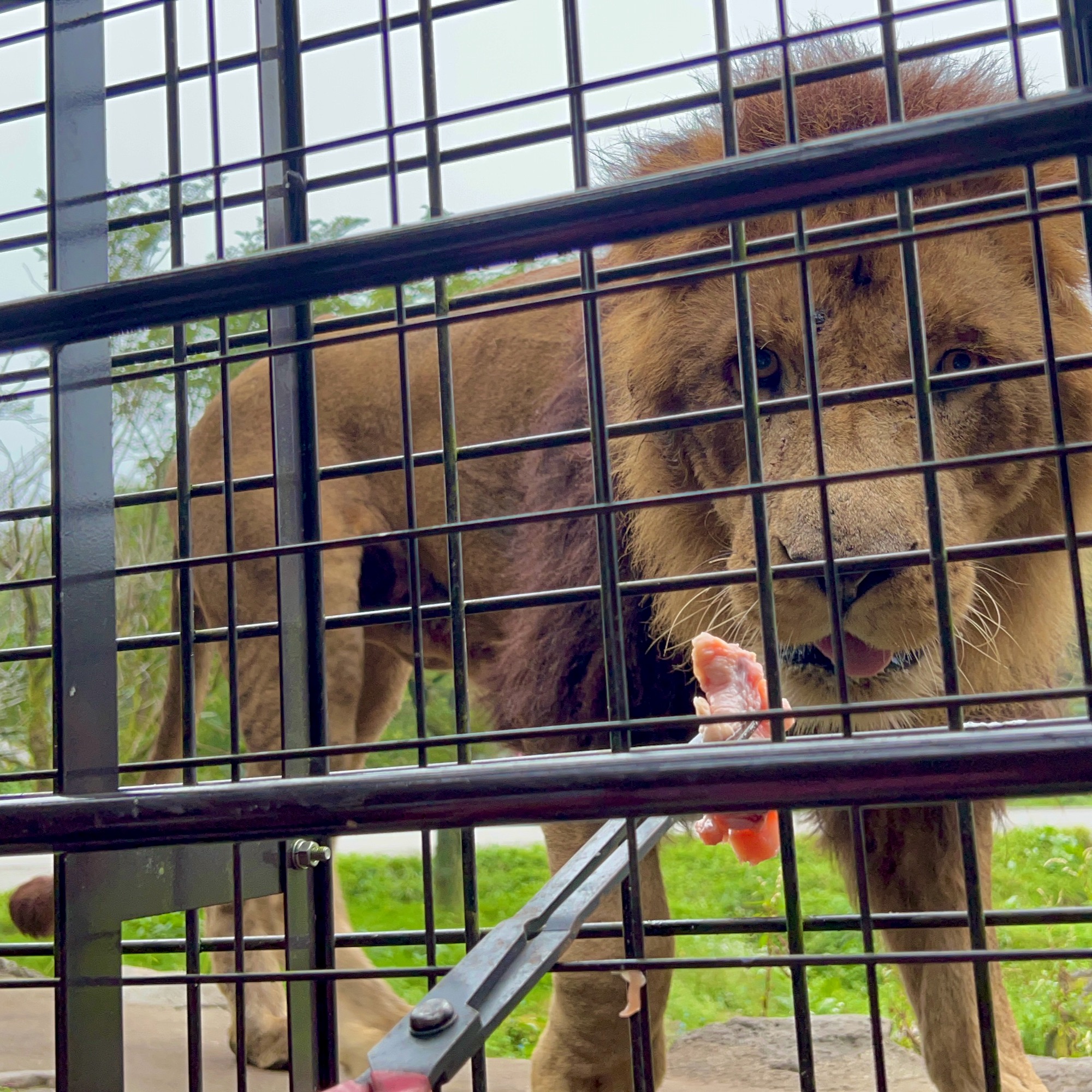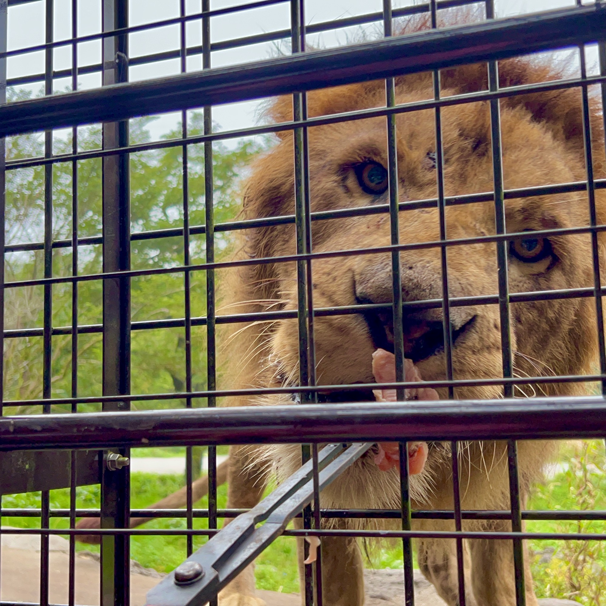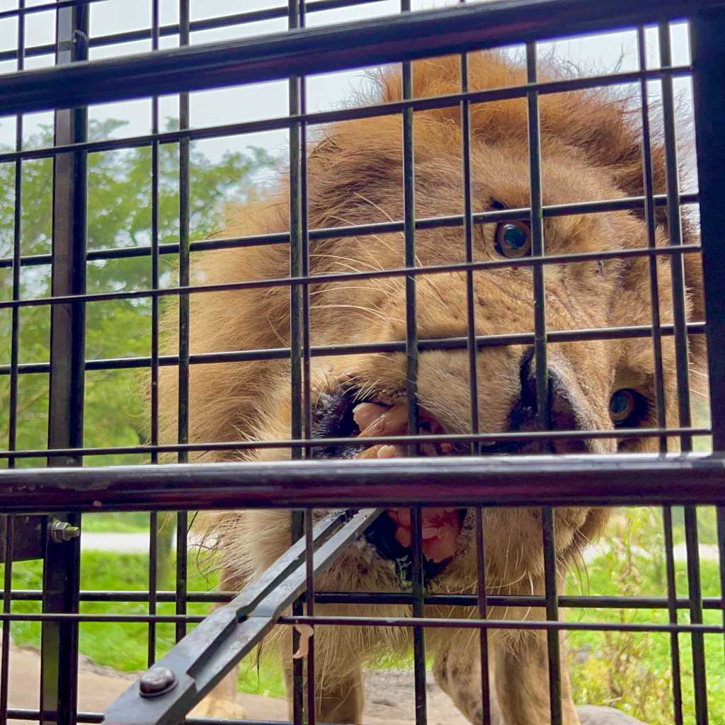 富士サファリパーク Part 5 めいさん日記 2022.11.20 次はスーパージャングルバスというアトラクションです。全方向が金網になっている特殊なバスに乗ります。 このエサを動物さんにあげます。 ひょいとバスの上にクマが乗りました。 ライオンのゾーンにやってきました。オスがバスに近づいてきました。 メスもエサを求めて近づいてきました。 うまくエサがあげられるかな? キタ━(・∀・)━!!!! がぶっ!!!! ペロリ。 チーター こちらのチーターは眠そう😴 キリンもエサやりをしました。 マイカーサファリよりも間近で見れてどれも大迫力でした。 コメント