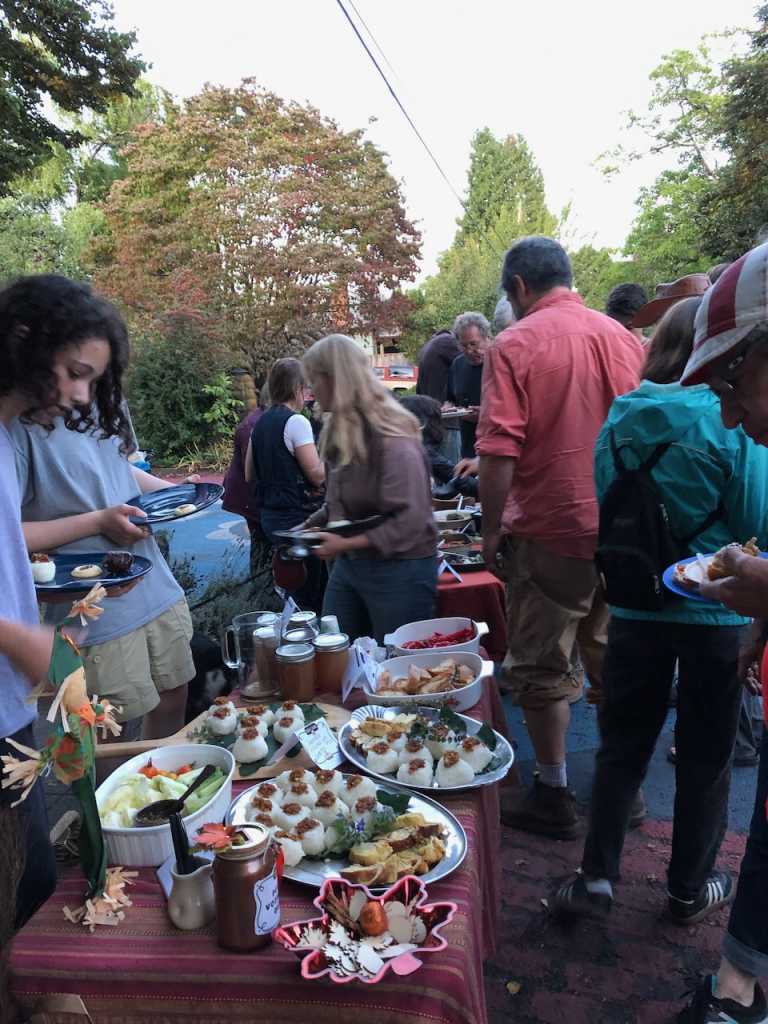 ある夜コミュニティーの人たちが集まる持ち寄りごはん会があったので、私たちもおにぎりと卵焼きを作って参加しました。