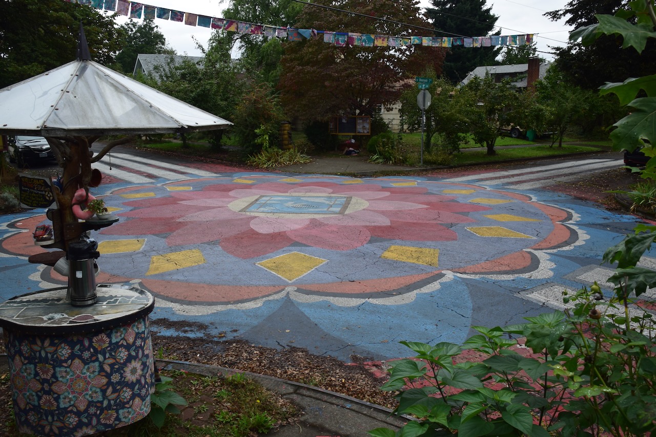 家の周りをお散歩。コミュニティーの中心には可愛らしいペイント。