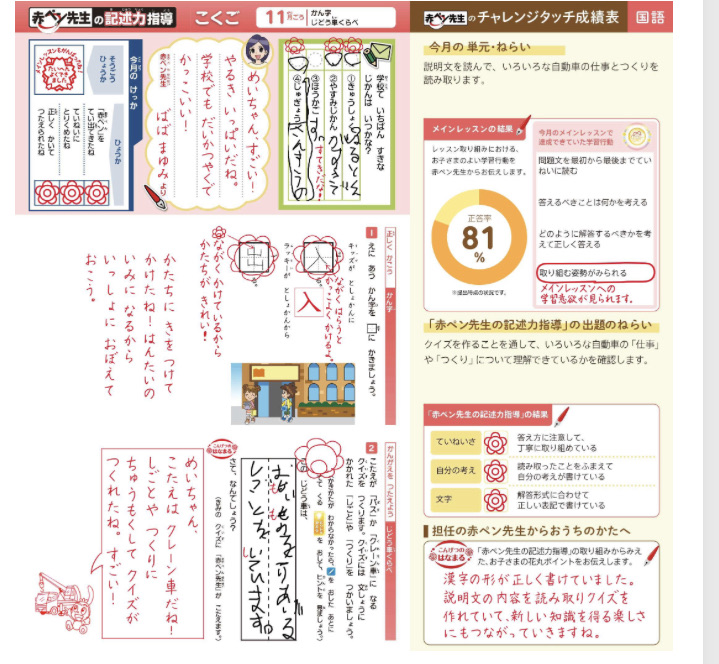 赤ペン先生 めいさん日記 2022.12.04 チャレンジタッチの赤ペン先生からの質問で「学校で一番好きな時間は ?」という質問に対して、たくさん答えを選んでいます。さらに好きな子の名前まで教えています笑。 コメント