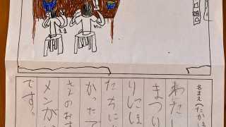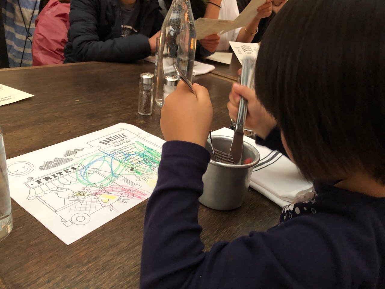 食事が運ばれてくるまでの間、メニューに塗り絵をして待ちました。