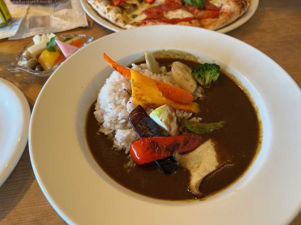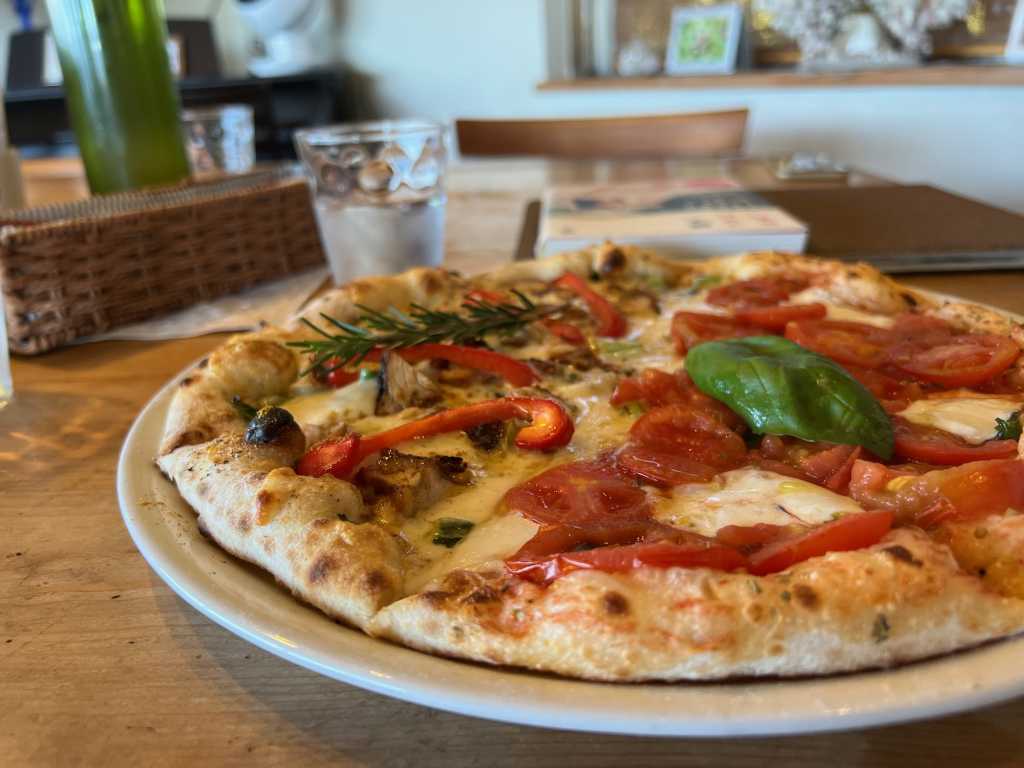 めいさんはトマトのマルゲリータとタンドリーチキンのハーフアンドハーフピザ。