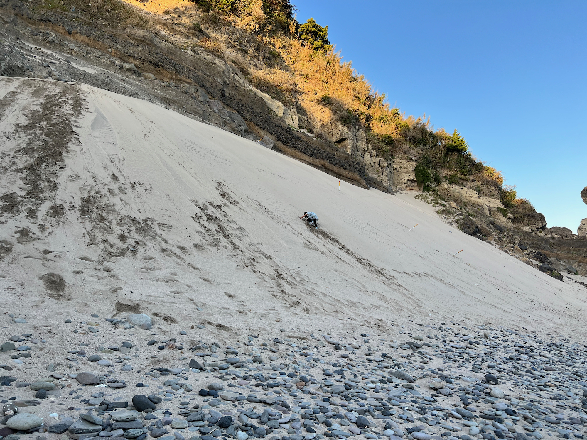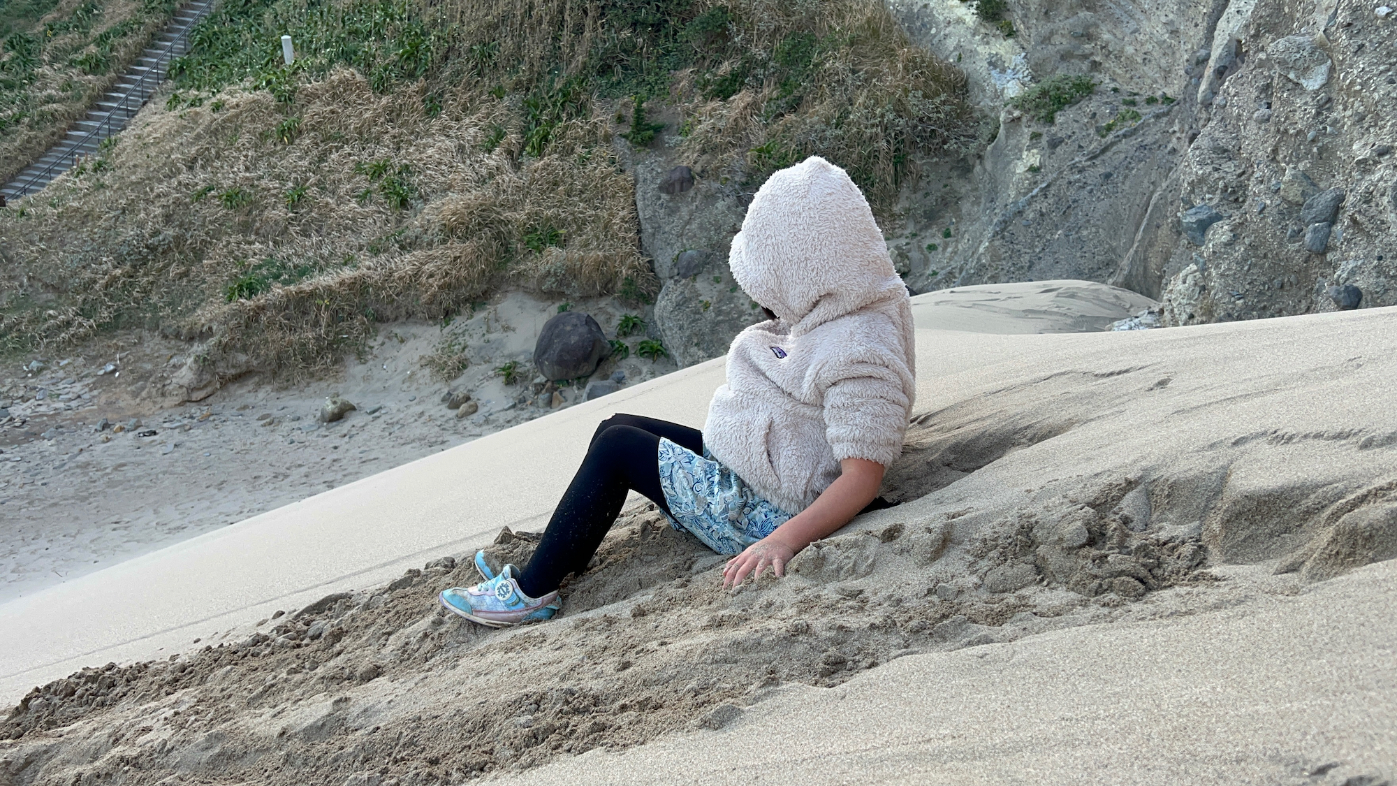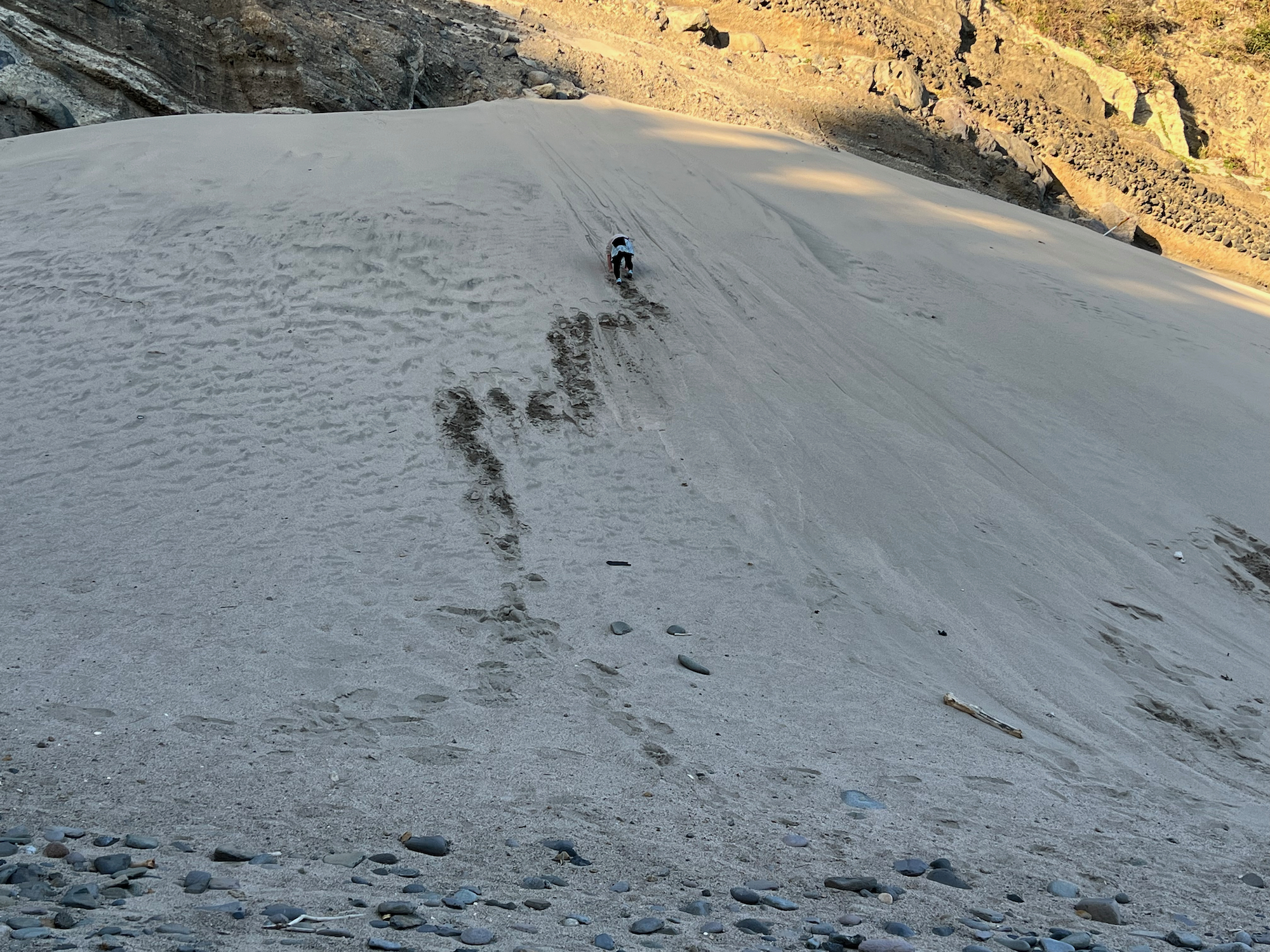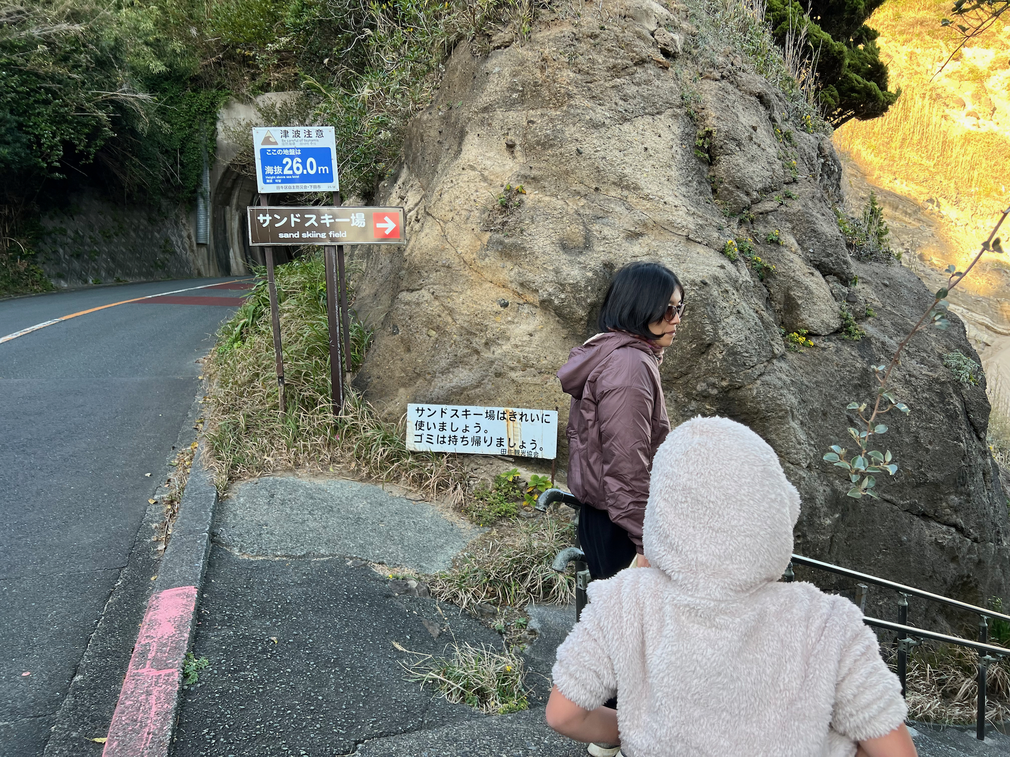 めいさんはサンドスキーを見たら、早速坂を登り始めました。