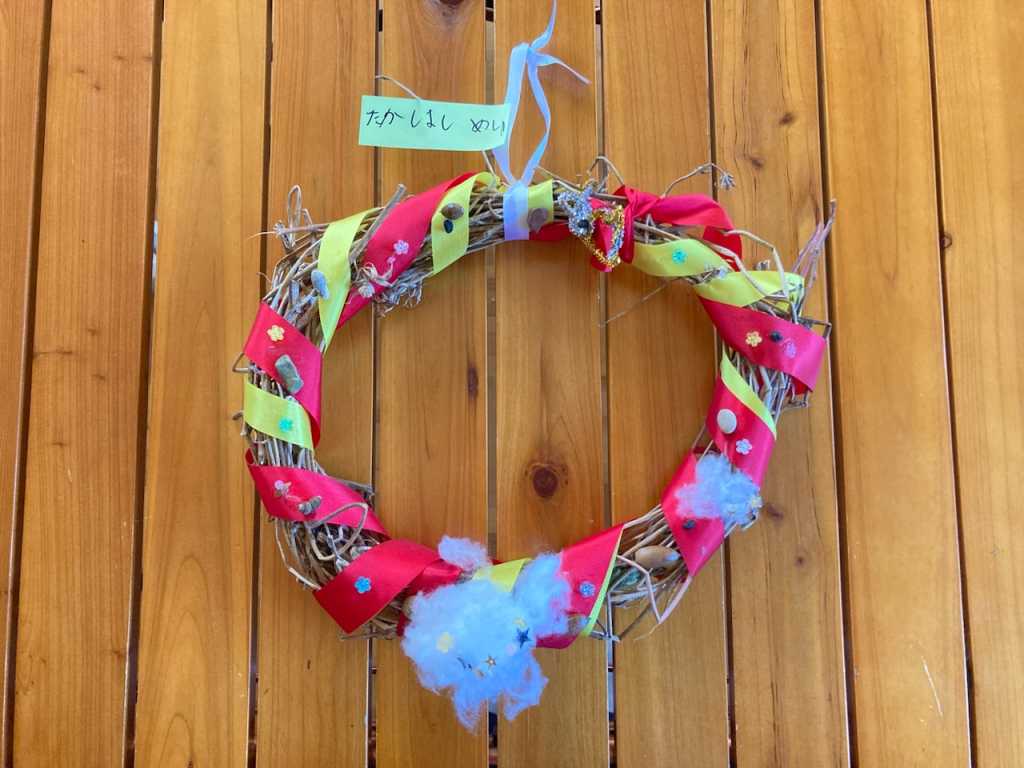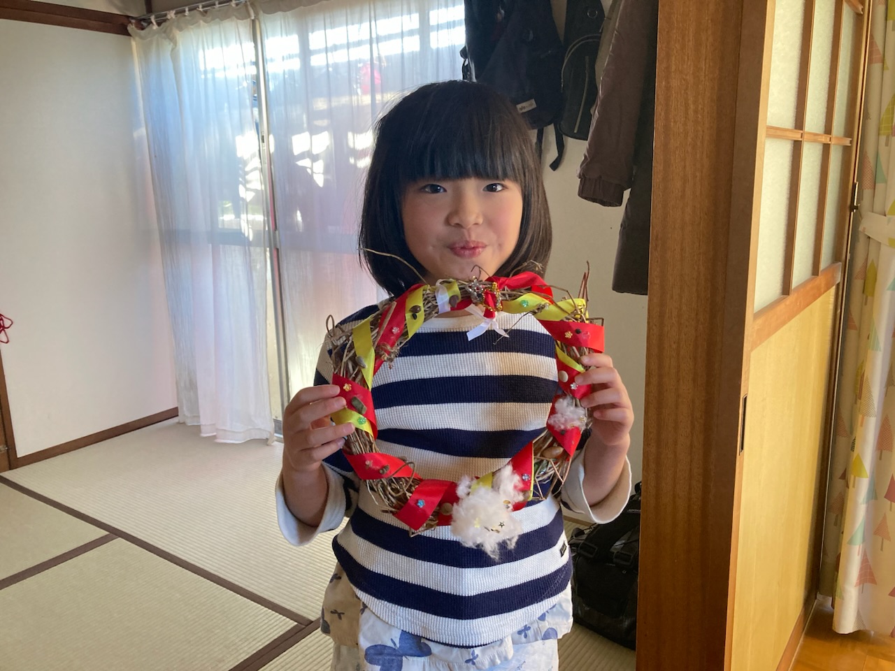 めいさんが小学校で作ってきたクリスマスのリースです。可愛らしく出来上がっていました。
