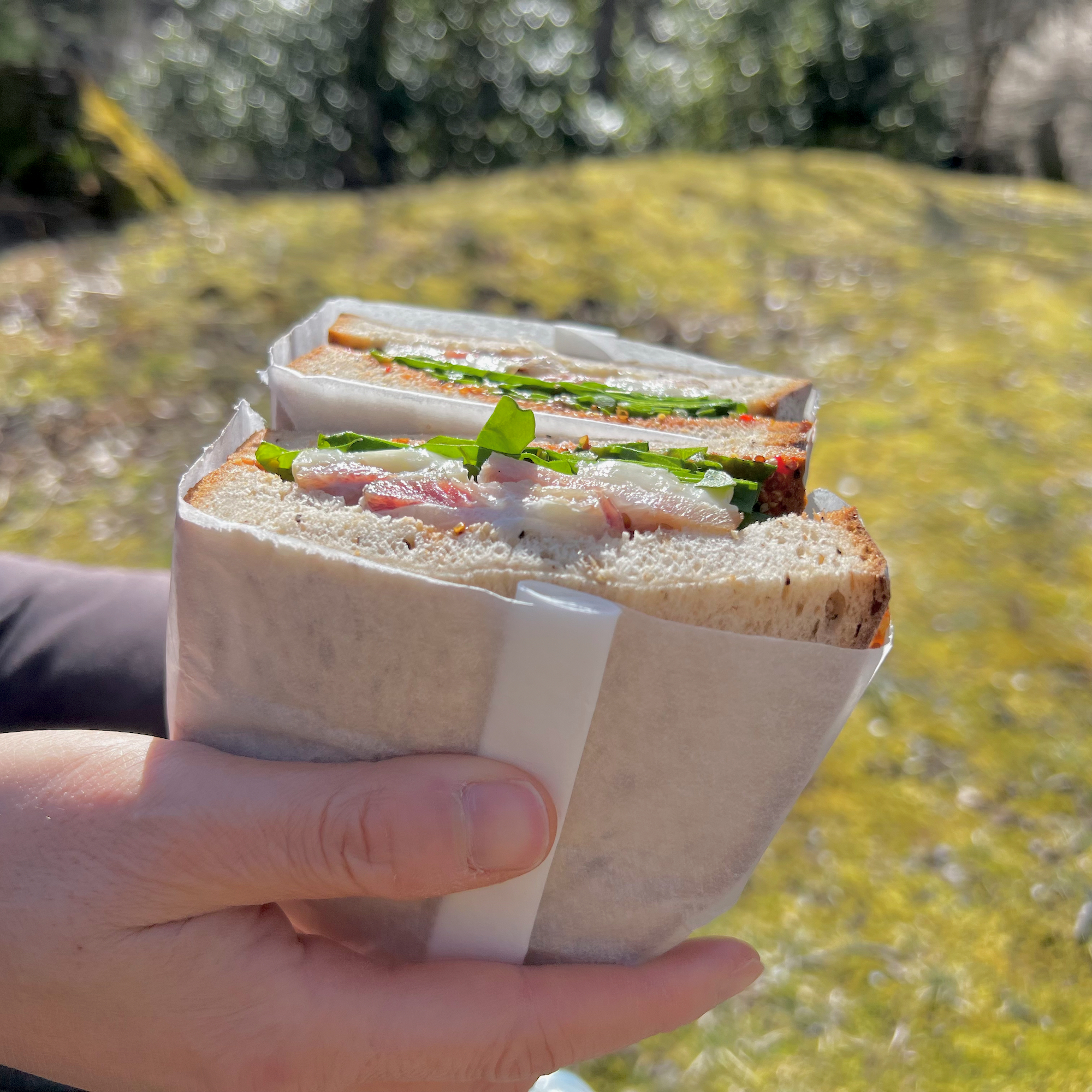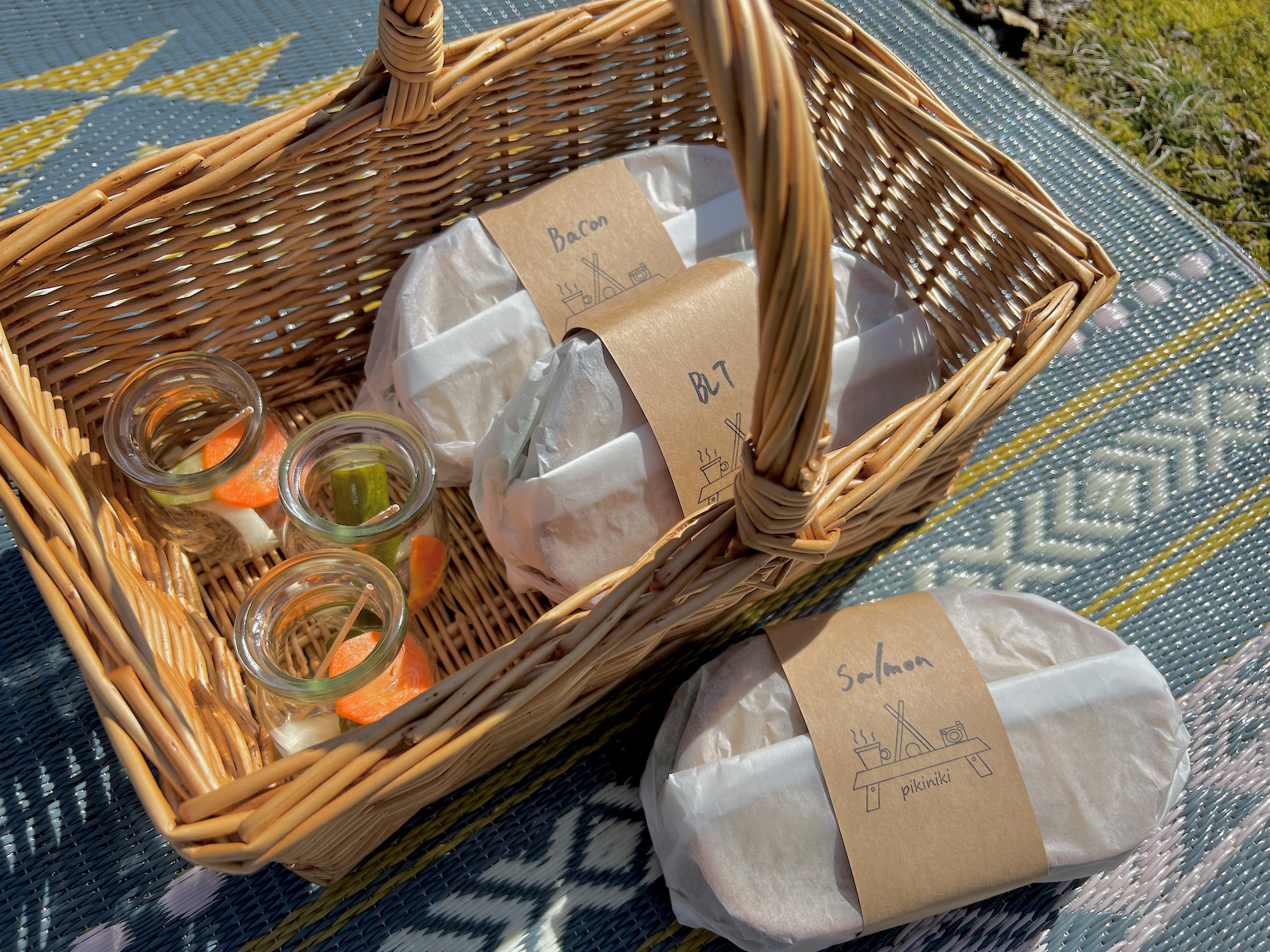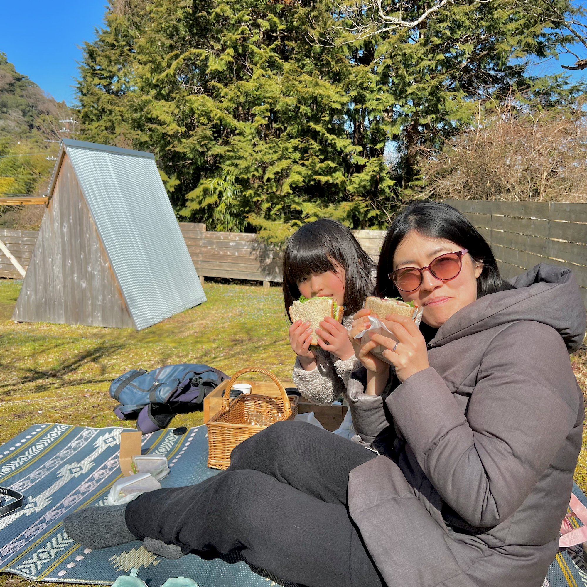 葉子ちゃんは中で食べようと考えていたけど、めいさんがどうしてもお外でピクニックランチがいいというので、結局3人でピクニックランチをしました。
