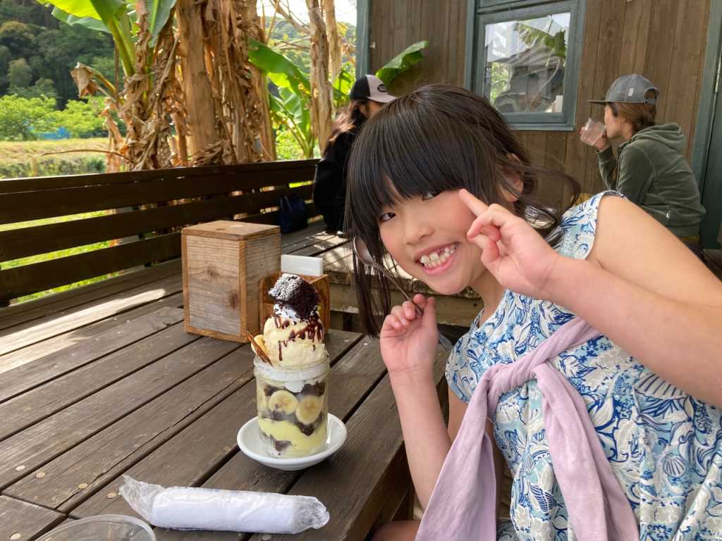 めいさんはおっきなチョコバナナサンデーを頼んでご満悦でした。