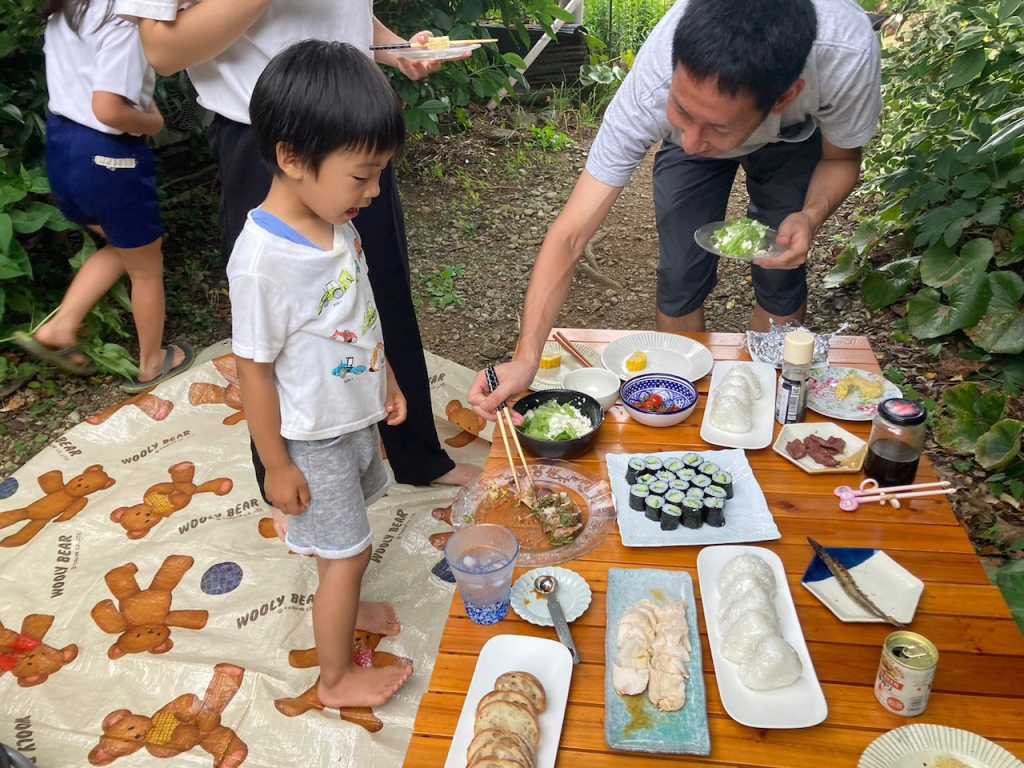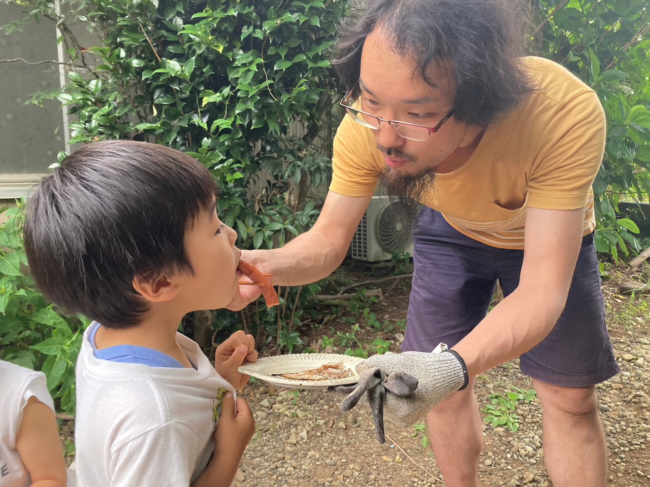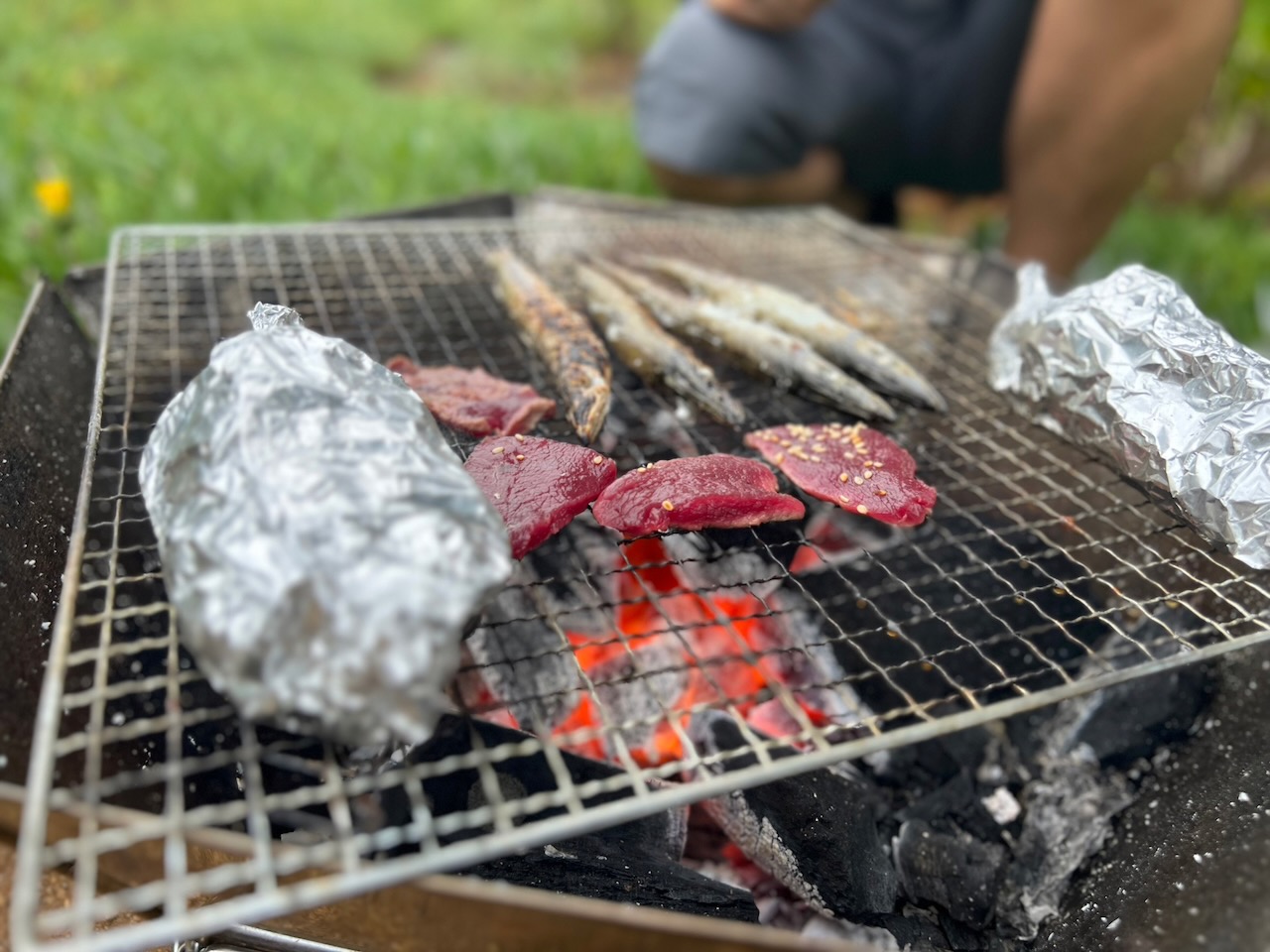 7/14(金)、中村家が時々お手伝いにいっている下田ブルーさんより新鮮な鹿肉をお裾分けしていただき、急遽お庭で中村家、大島家と一緒に BBQ をすることになりました。