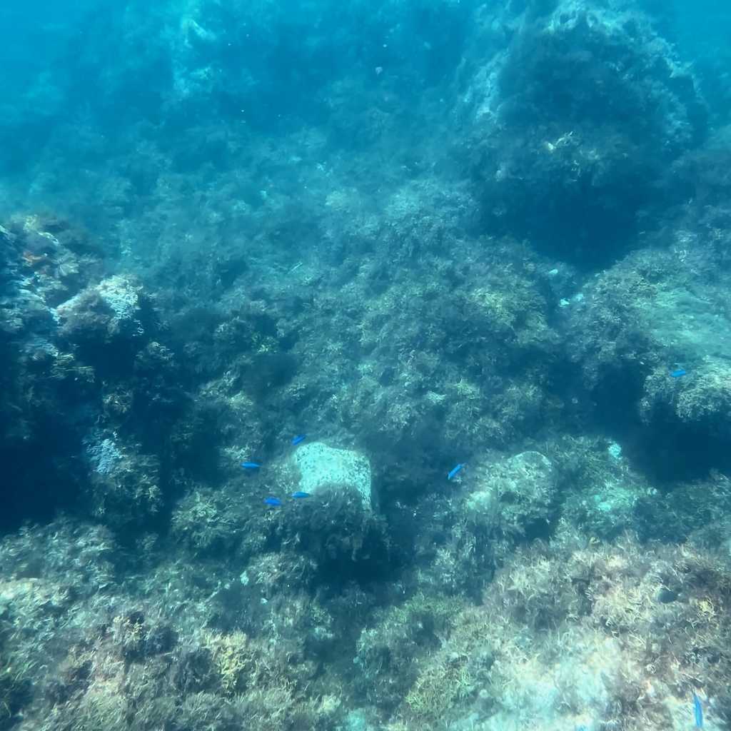 海を覗くと色鮮やかな魚たちがたくさん見えました。