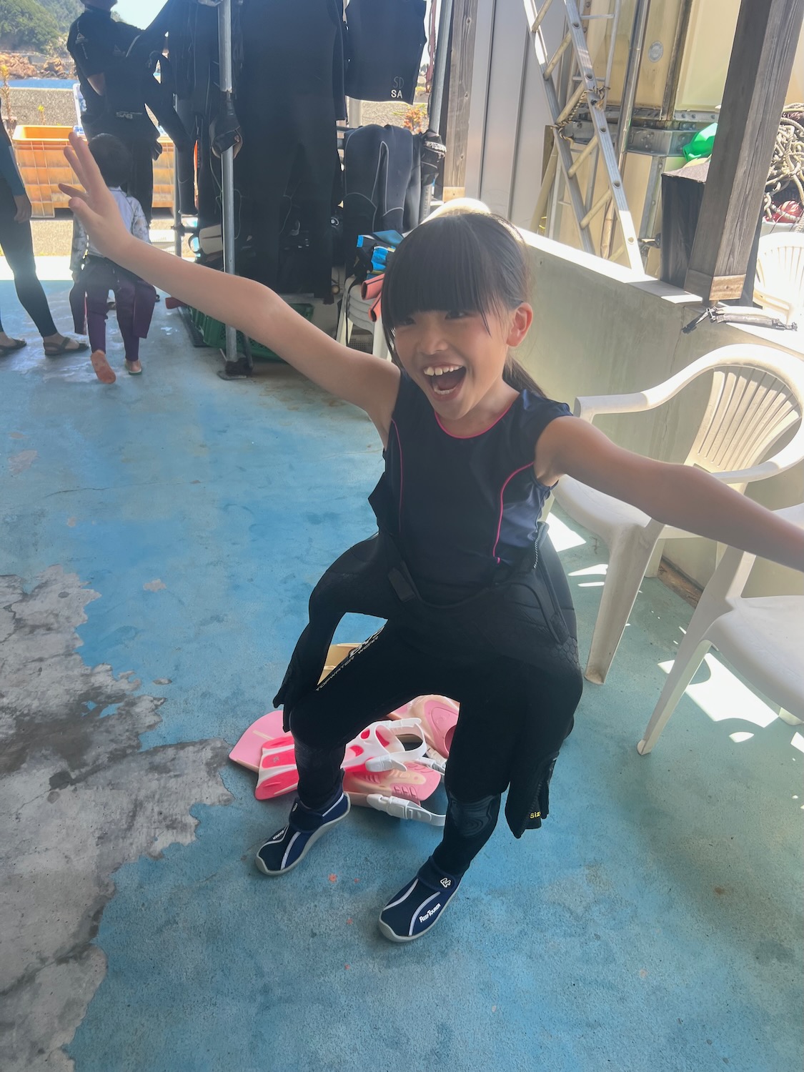まぁッ❗️ウエットスーツとライフジャケットをつけためいめいのお顔がコウスケの子ども時代にそっくり、にびっくり‼️