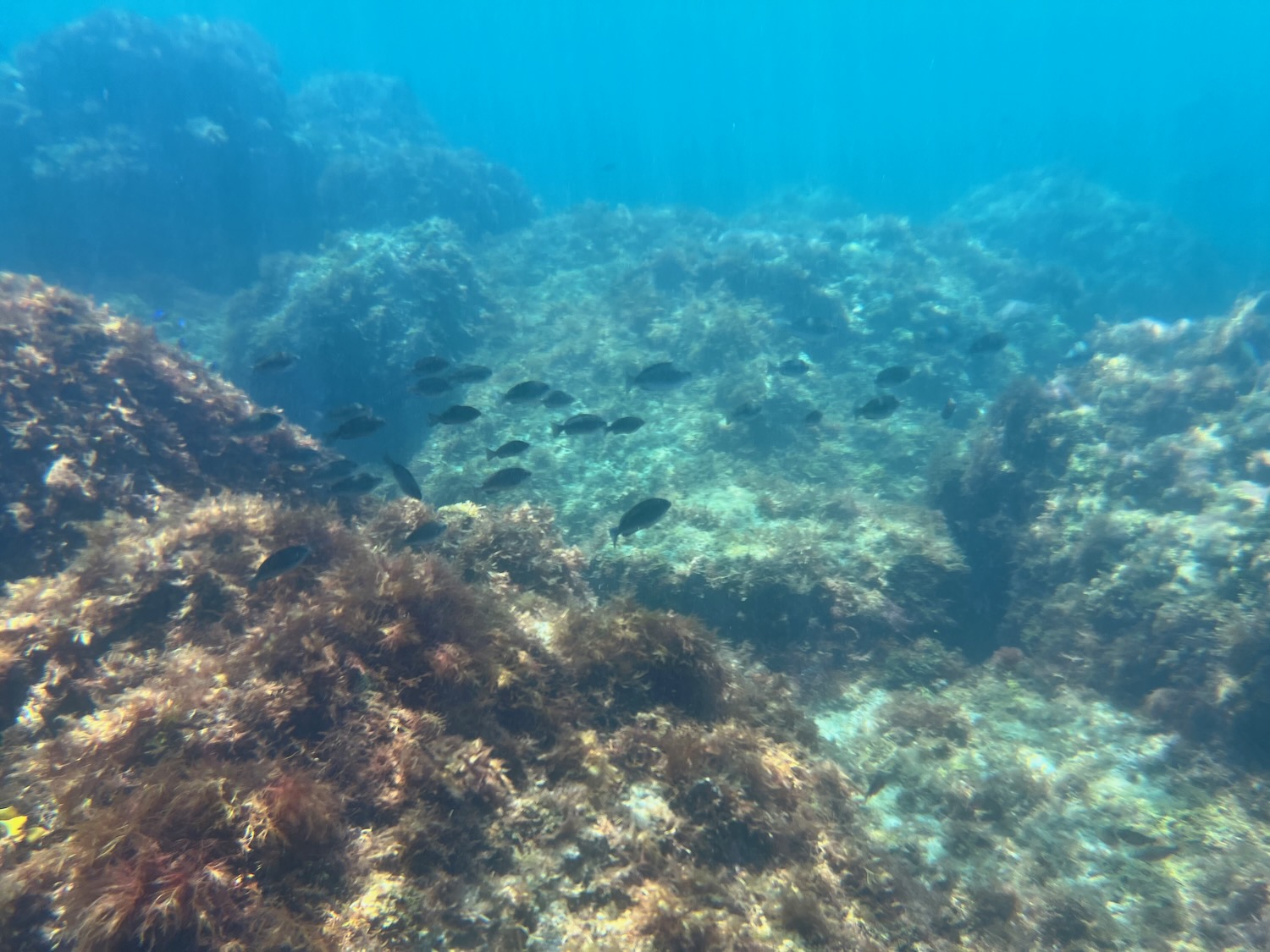 海を覗くと色鮮やかな魚たちがたくさん見えました。