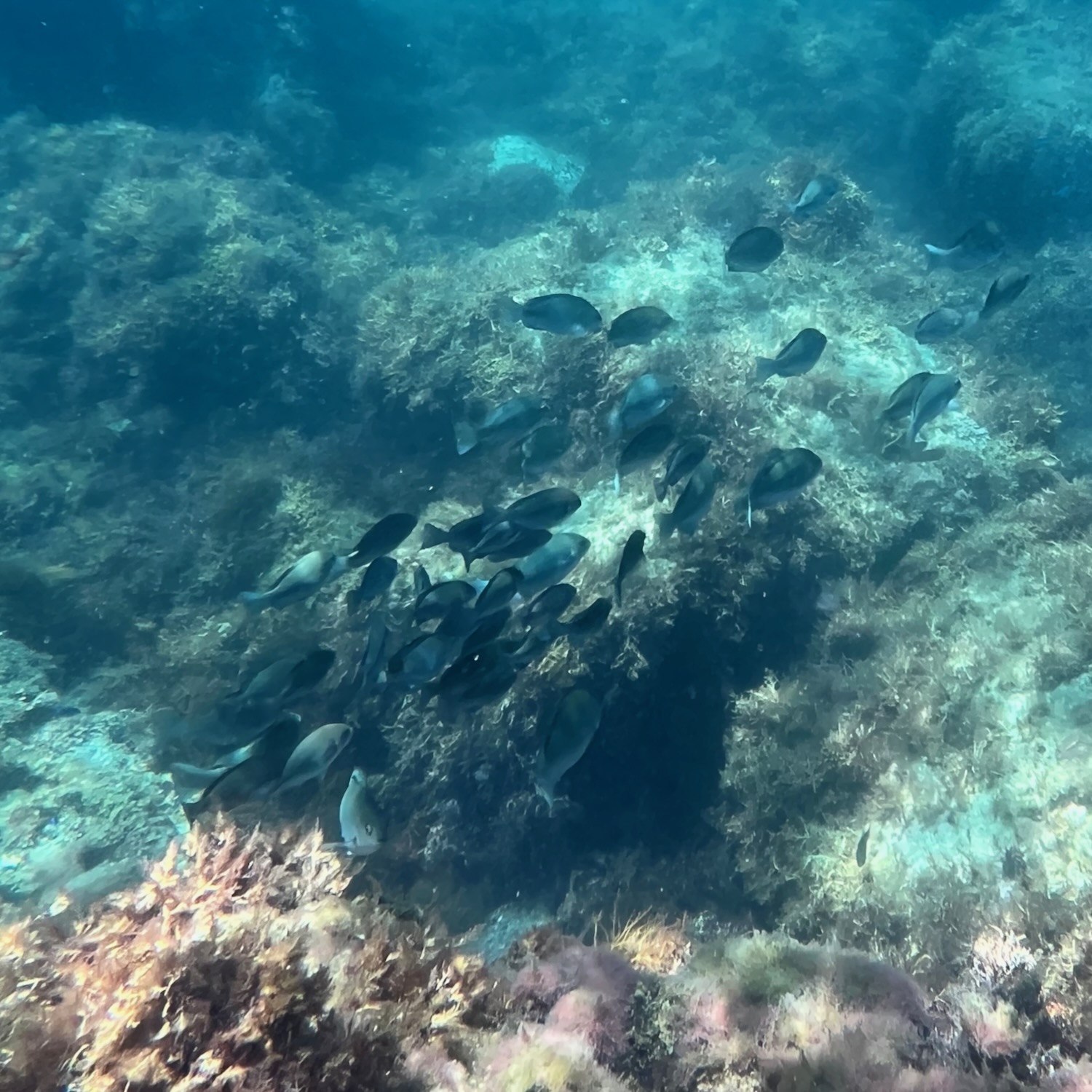 家の近くにあって歩いて渡れる恵比寿島という小さな島で、ウェットスーツとシュノーケルを付けて、海に潜ります。
