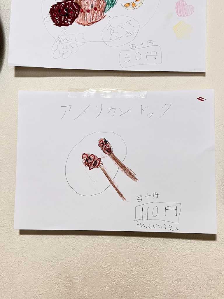めいさんが描いた可愛らしいお料理の看板。