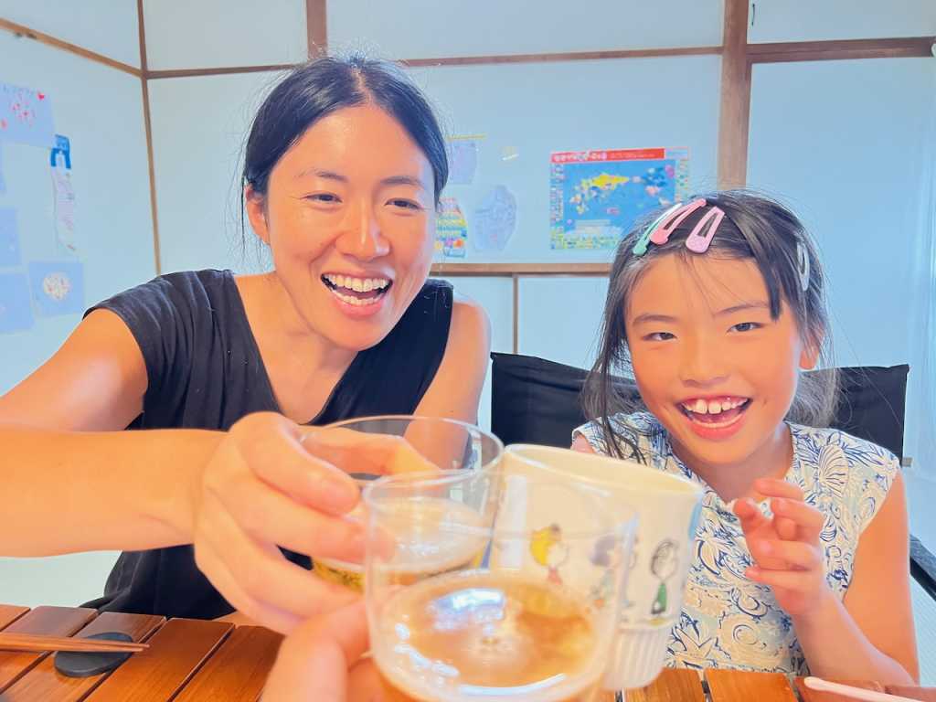 めいさんはジュース、こうすけくんと私はビールで乾杯 !