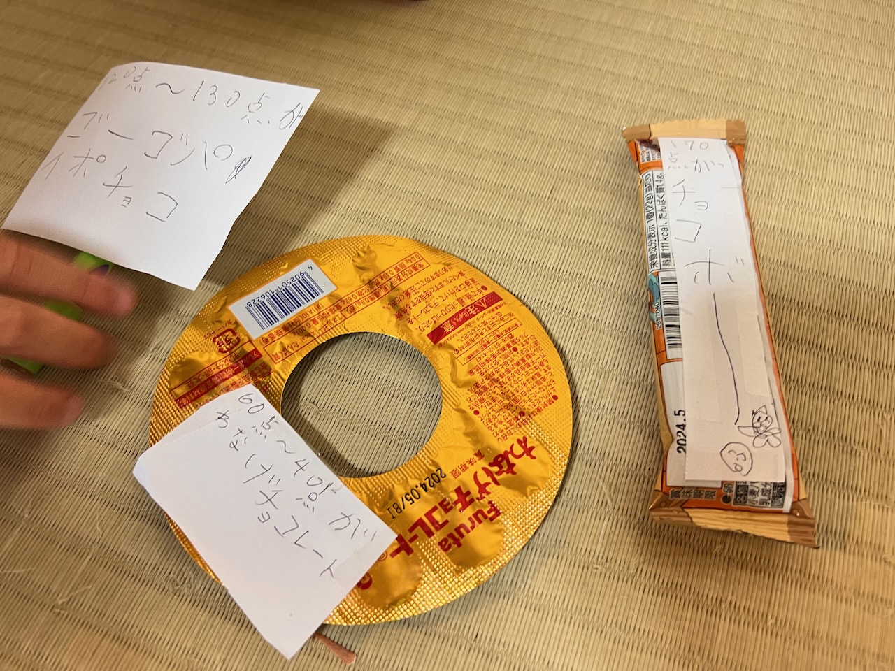 何点を当てたらこのお菓子をもらえるというのをめいさんが決めました。