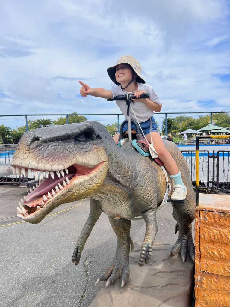 2年前は動く恐竜が怖くて乗れなかったゴーカート。