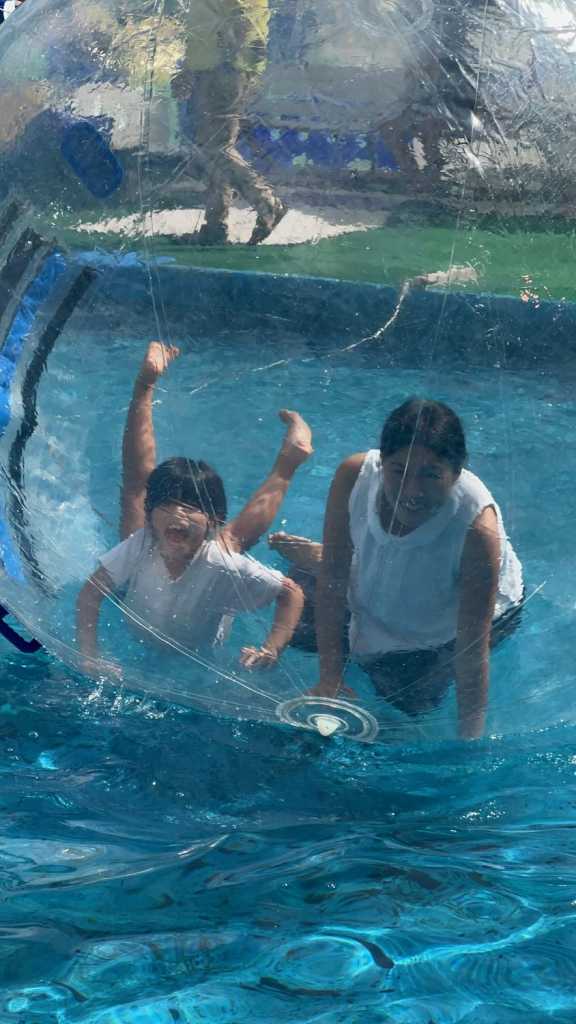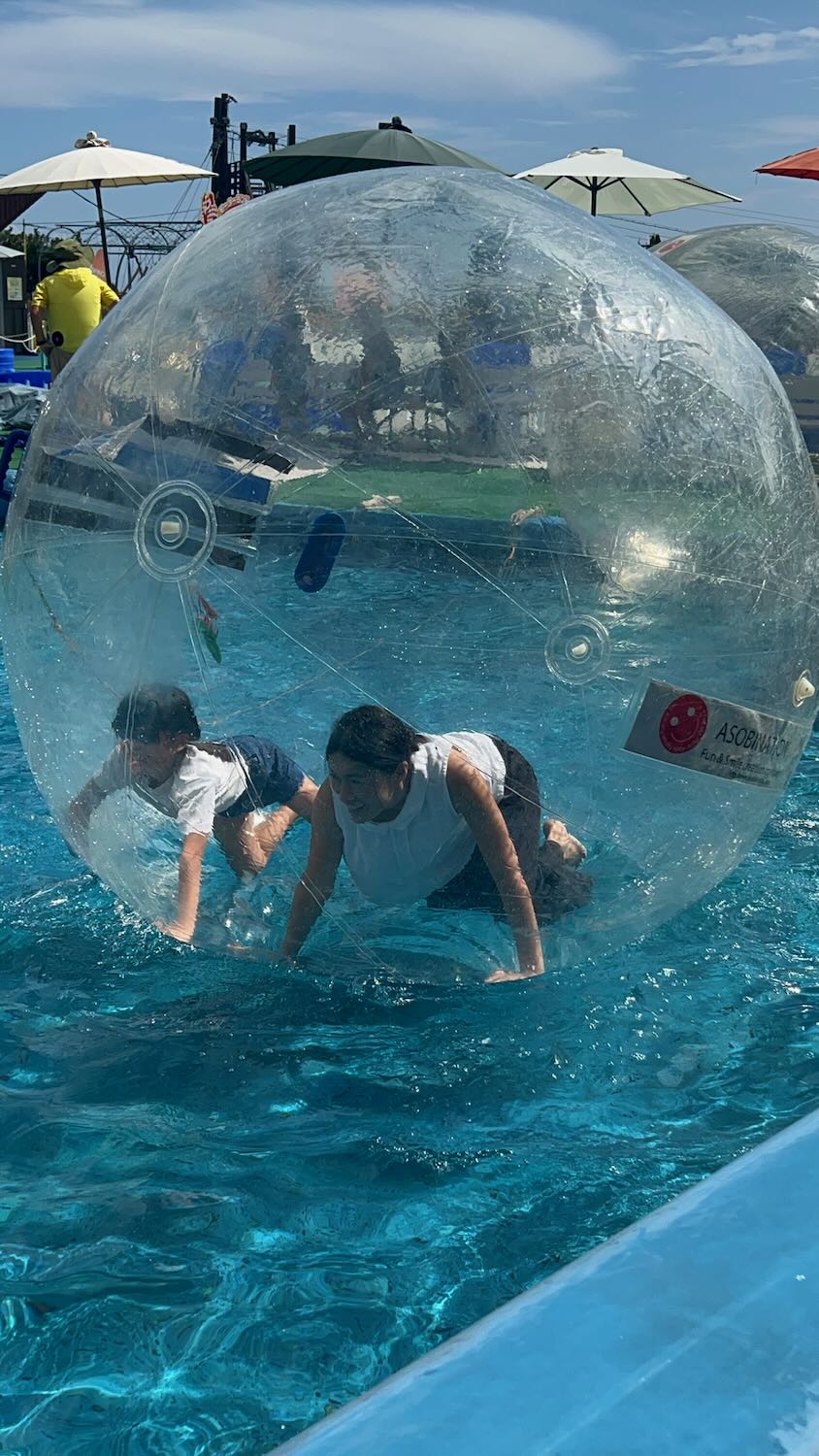お目当てのウォーターバルーンを目指してダッシュしています。