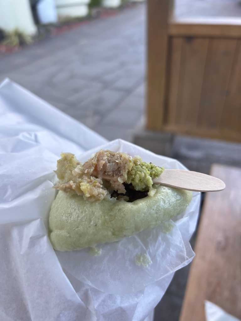 こうすけくんはわさび豚まんとソフトクリーム。