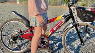 めいさん日記 自転車 2024/02/12(月)、家の敷地内で自転車で遊んでいましたが、狭いので敷地を少し出て、ほとんど車が来ないとなりの駐車場で自転車をこぎました。 2024.02.14 めいさん日記