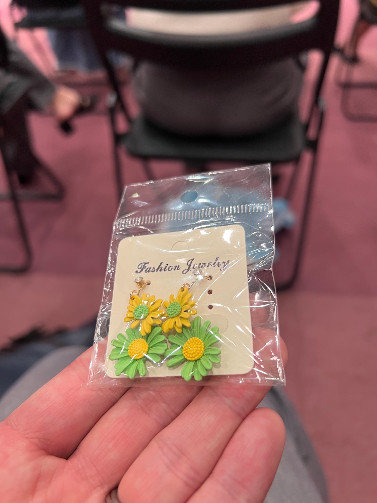 保護者向けのじゃんけん大会でこうちゃんがかわいらしいピアスを当ててしまいました。