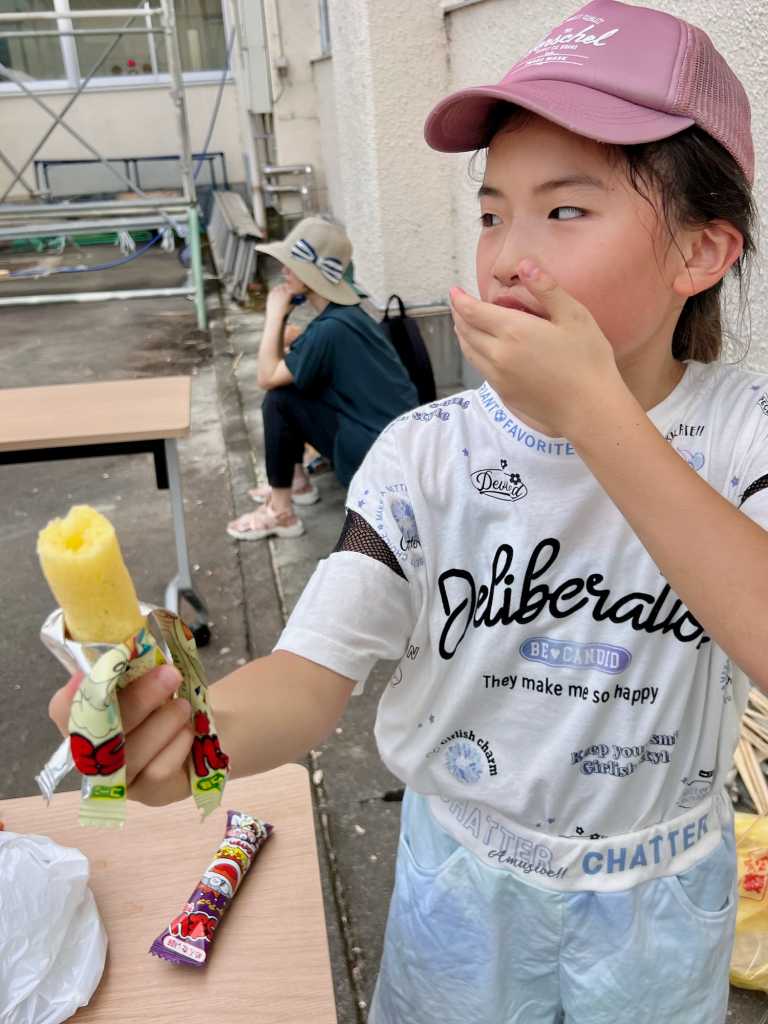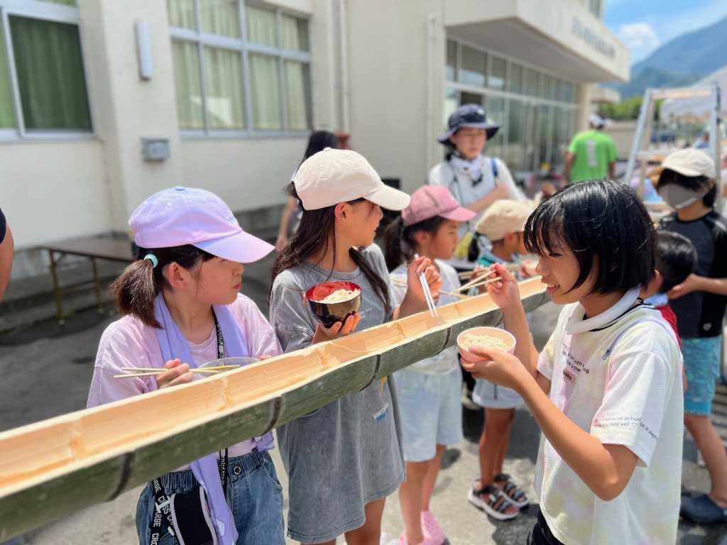 そうめん以外に、ミニトマトや袋のままのお菓子も流して、子どもたちは喜んでいました。
