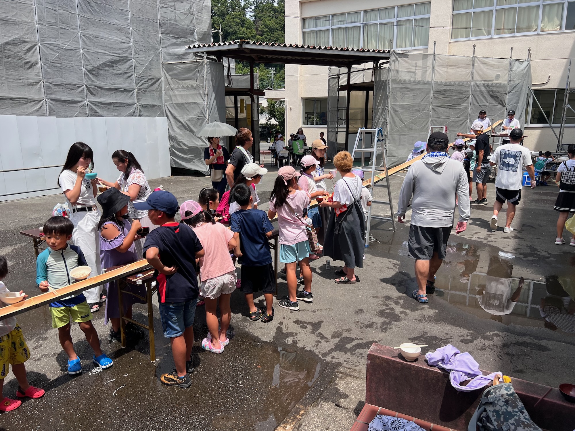 親児(おやじ)の会の流しそうめんに参加しました。