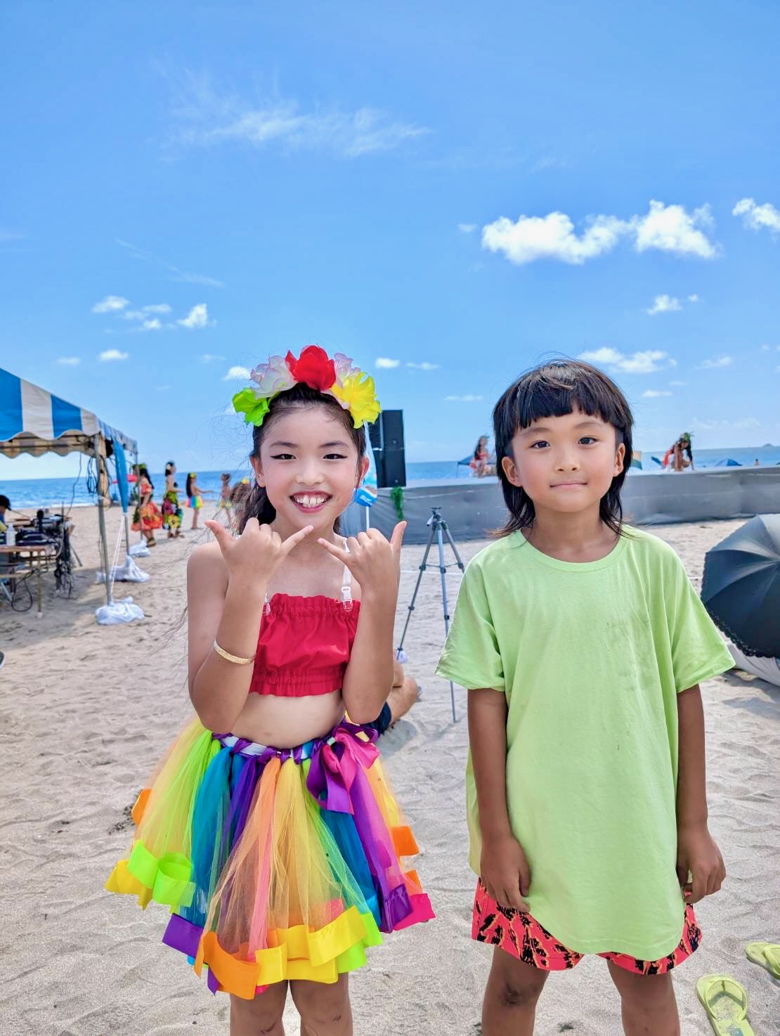 フラのお友達と浜辺で海水浴を楽しみました。