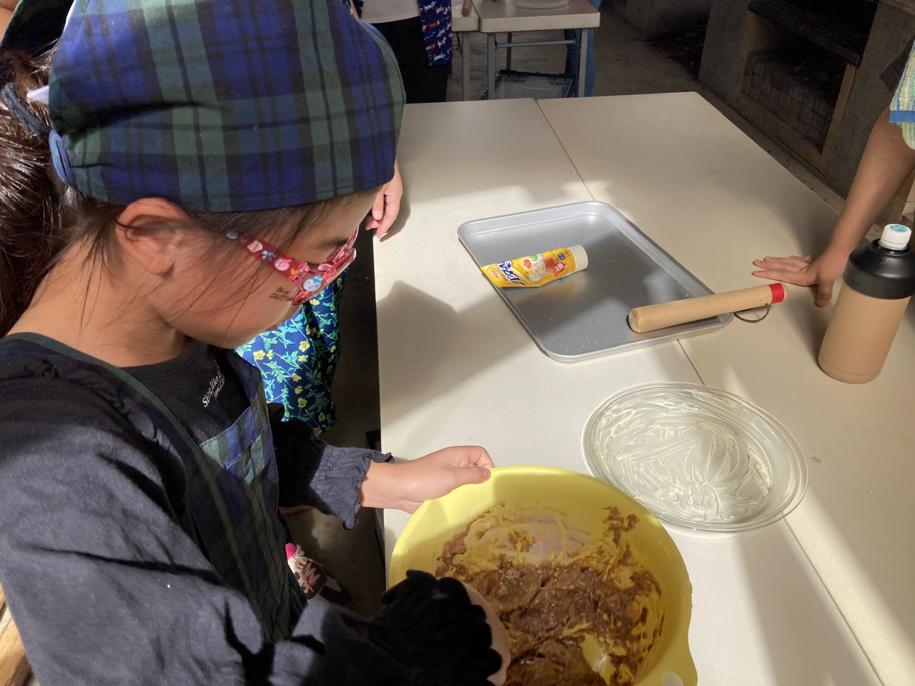 ブラウニーケーキも出来上がり。パングラタンは現地(野外活動センター)で試食して、ブラウニーケーキはお家に帰って孝輔くんも一緒に食べました。美味しかったです。