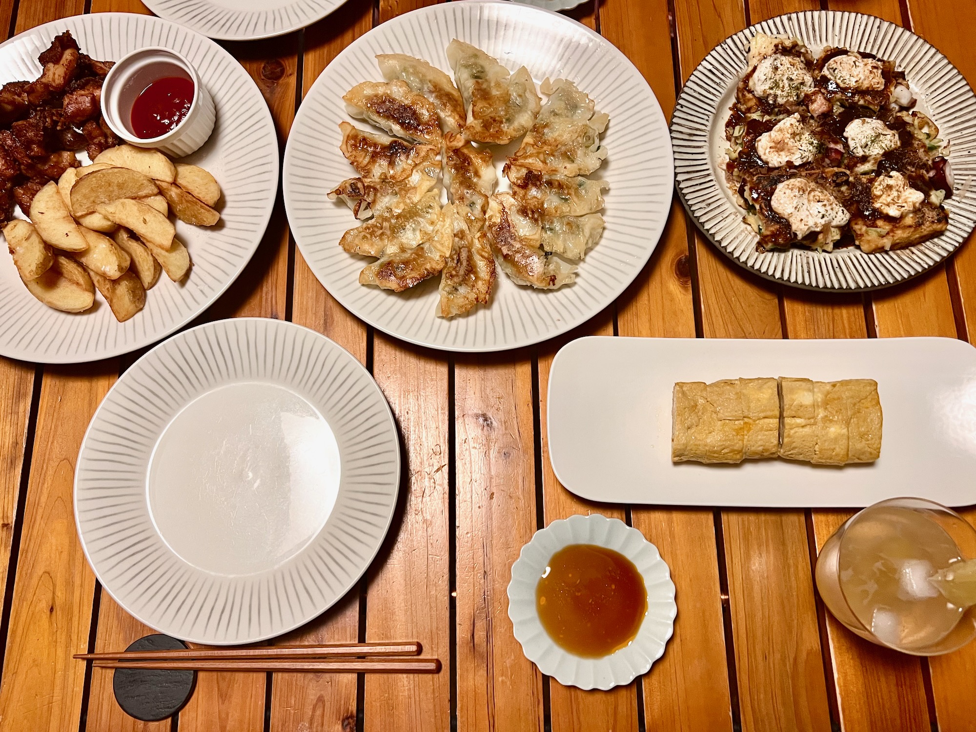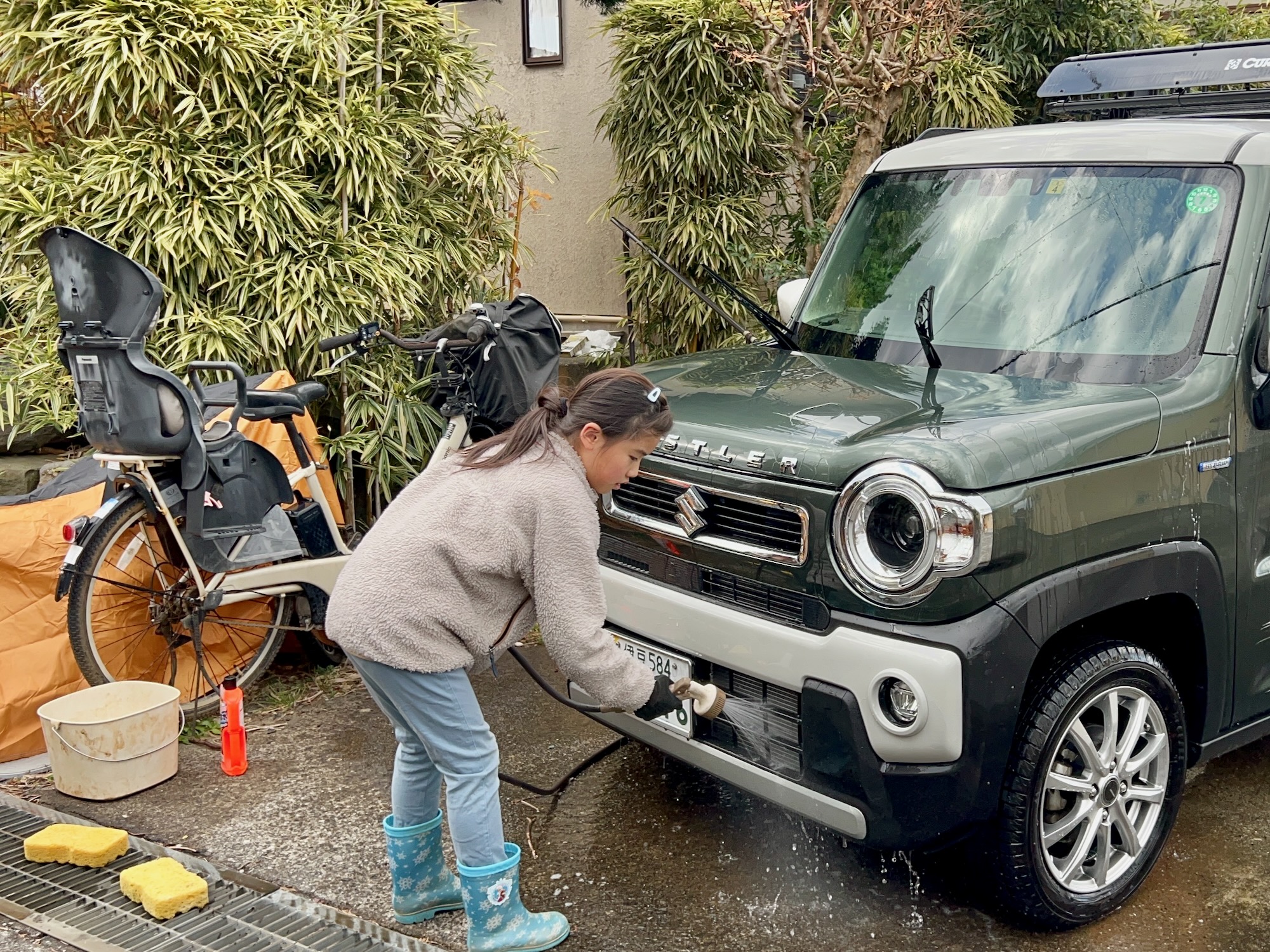 洗車と忘年会 めいさん日記 2024.12.31 12/30(月)、めいさんとこうちゃんでハスラーをきれいにしてあげました。 めいさんは丁寧な仕事ぶりでよく働いてくれました。 夜はおうちで忘年会を開きました。 唐揚げとフライドポテト。 餃子。 卵焼き器で作ったたこ焼き。 お隣さんから頂いたレモンで仕込んだ自家製レモンサワーとだし巻き玉子。 今年あった楽しいことを話し合って楽しみました。めいさんは新しい学校でお友達ができたことや、ハワイアンズに行ったこと、夏にアロハシャワーで踊ったことなどが楽しかったようです。 ハワイアンズ1日目ずいぶん前になりますが、今年の 1/21(日) 福島県にあるスパリゾートハワイアンズに行ってきました。守谷SAでランチ休憩にしました。めいさん、いい食べっぷり。こうちゃんもガッツリ唐揚げランチ。ハワイアンズに着きました。めいさんはベッドにテ... アロハシャワー20249/15(日)、下田で開催されるアロハシャワーのフラのステージに出演しました。フラの前にはズンバの体験レッスンもありました。フラの生徒やめいさんも楽しそうに踊ってました。中村家が見に来てくれました。ステージ前の記念撮影。Chopstickめ... コメント