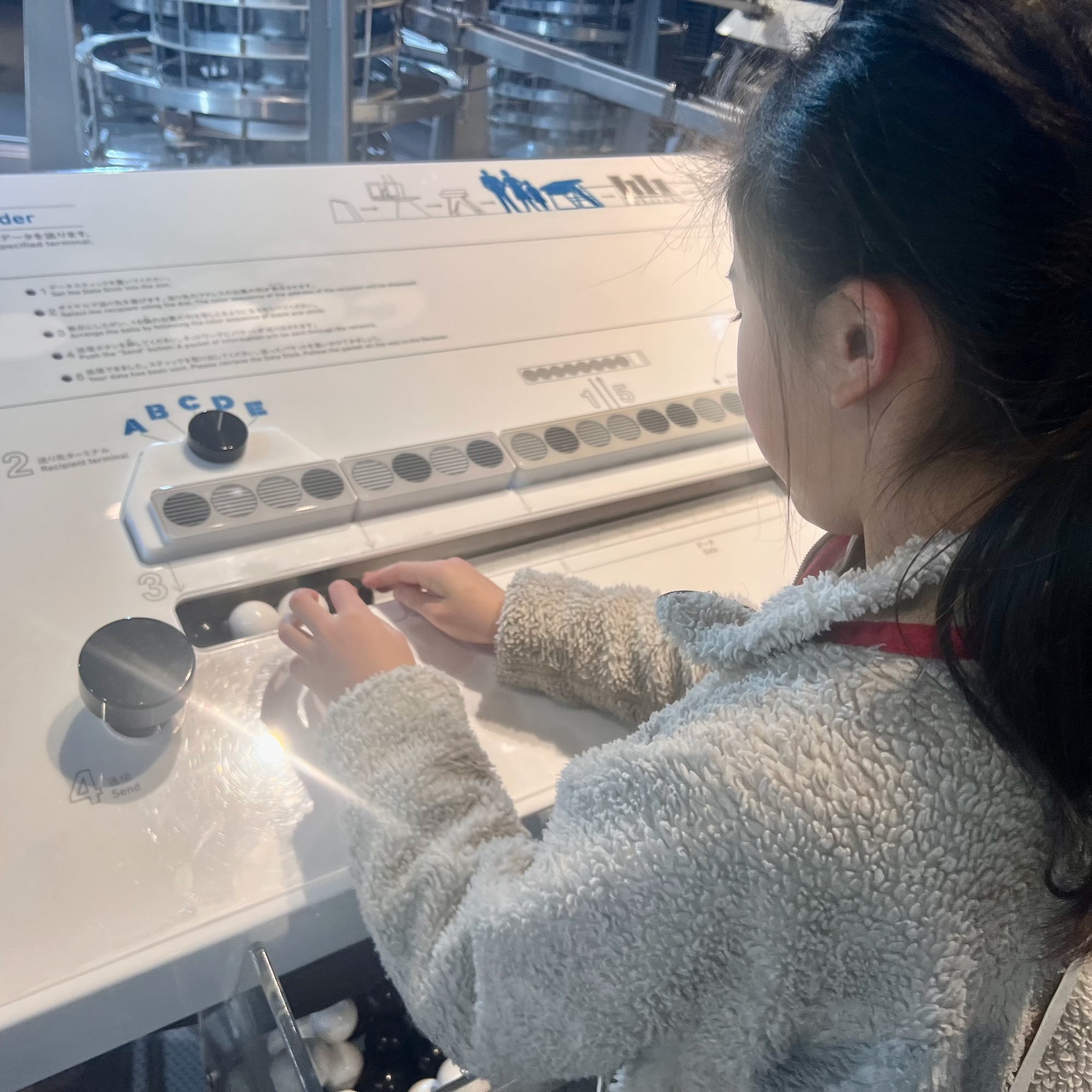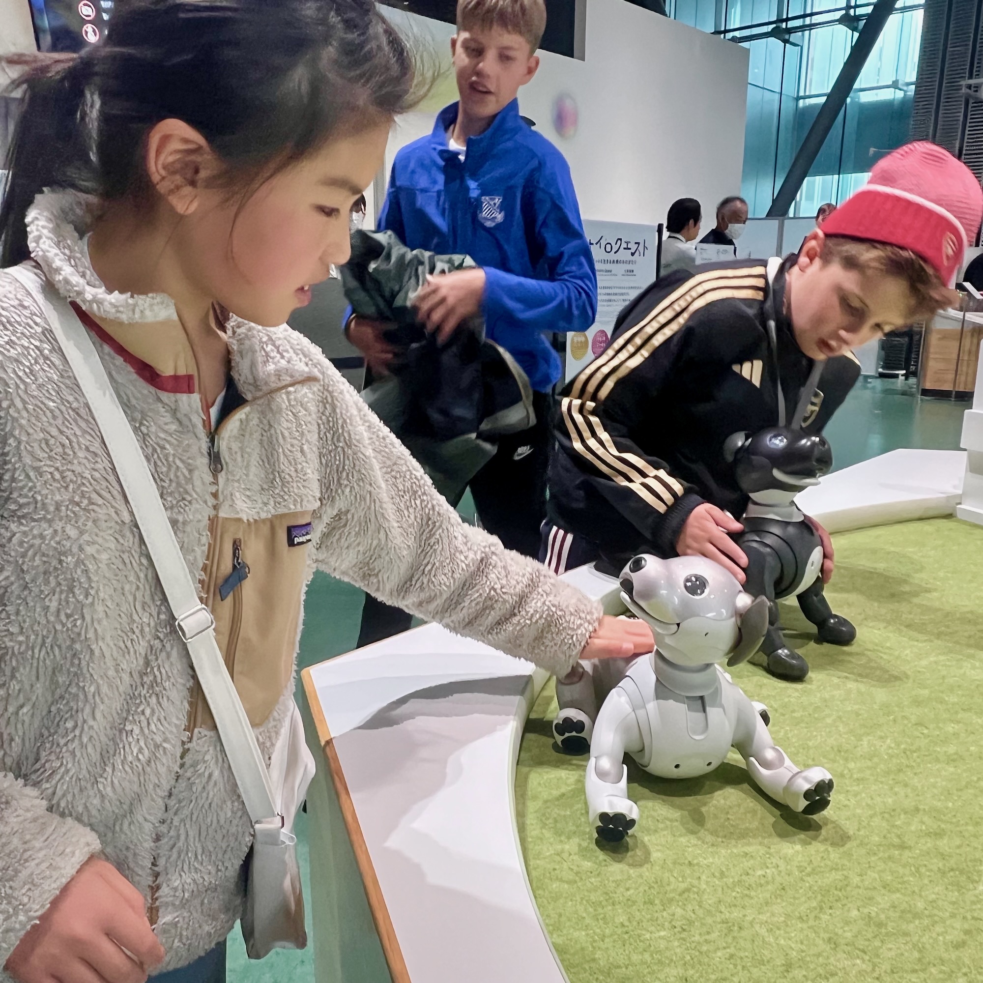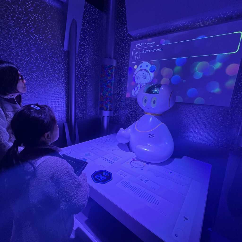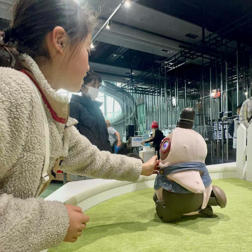 めいさんはかわいらしいロボットとのふれあいを楽しんでいました。