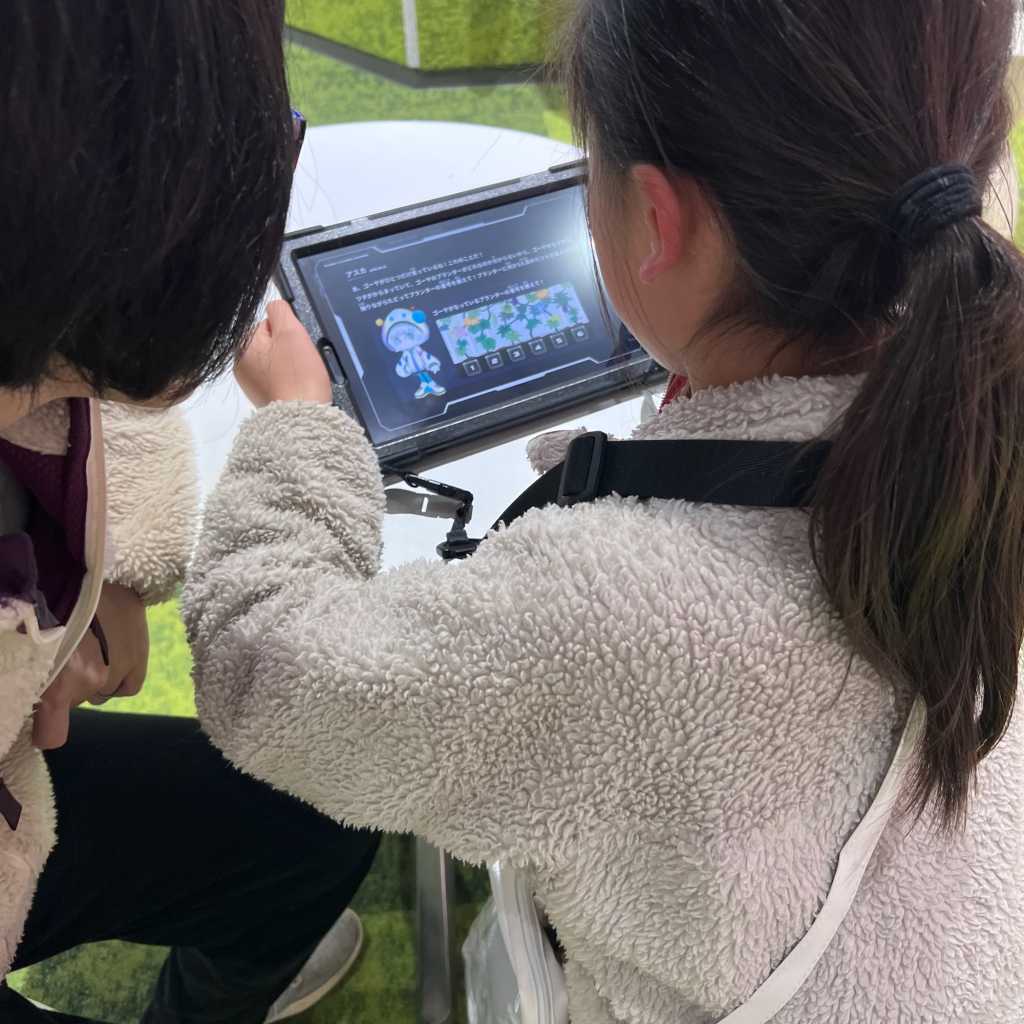 ナナイロクエストに参加しました。ロボットが活躍するまち「ナナイロシティ」へのツアーを通じ、ロボットと生きる未来の社会を考える体験型の展示です。タブレットを使って、ミッションをクリアしていきます。