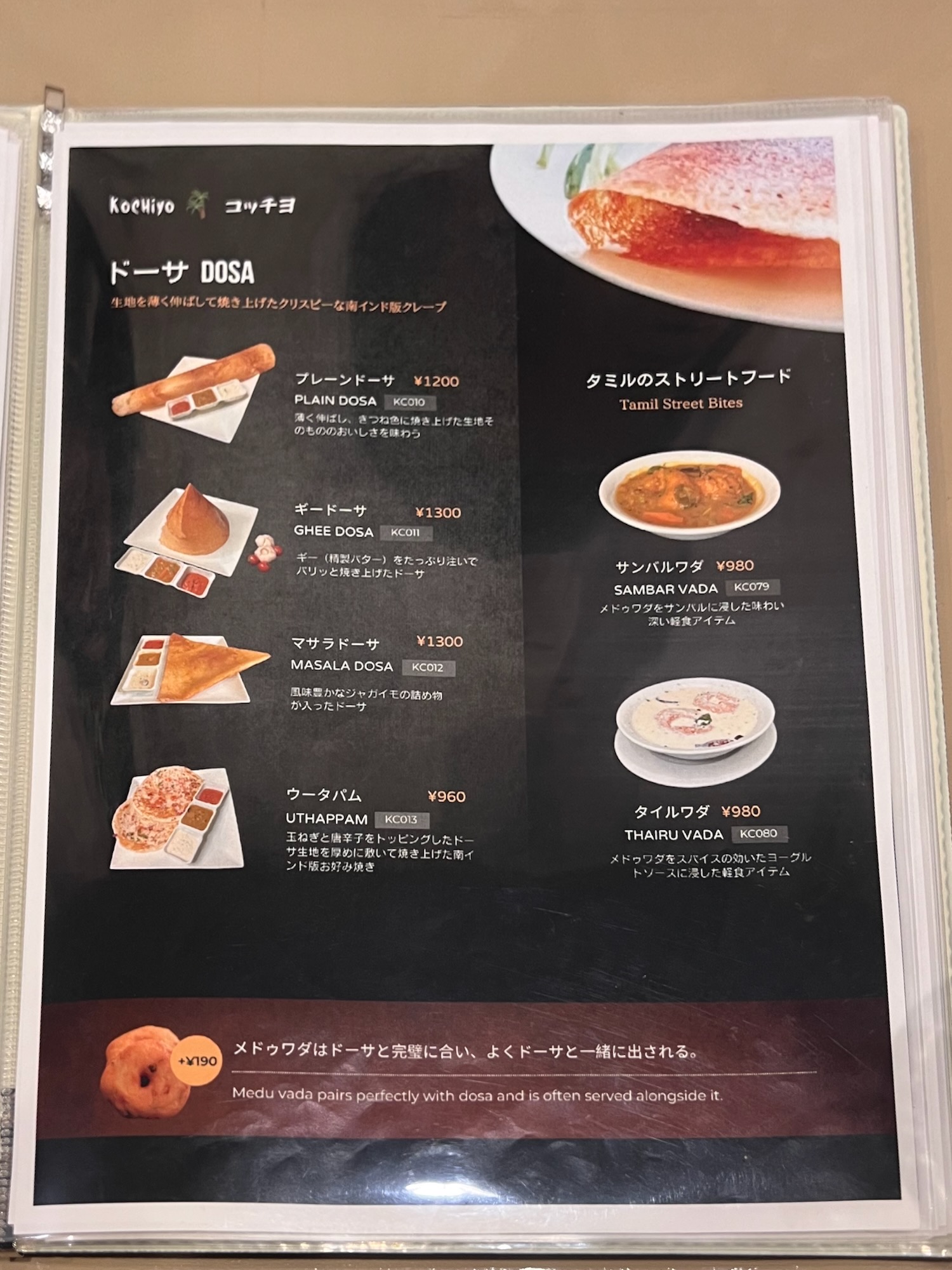 めいさんは「プレーンドーサ」というインド風クレープを食べました。