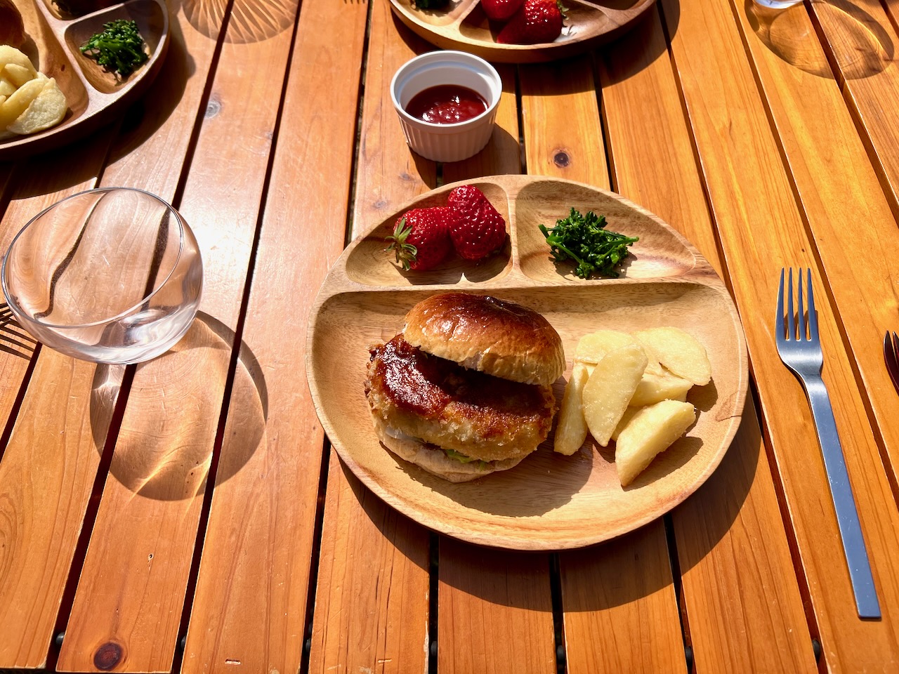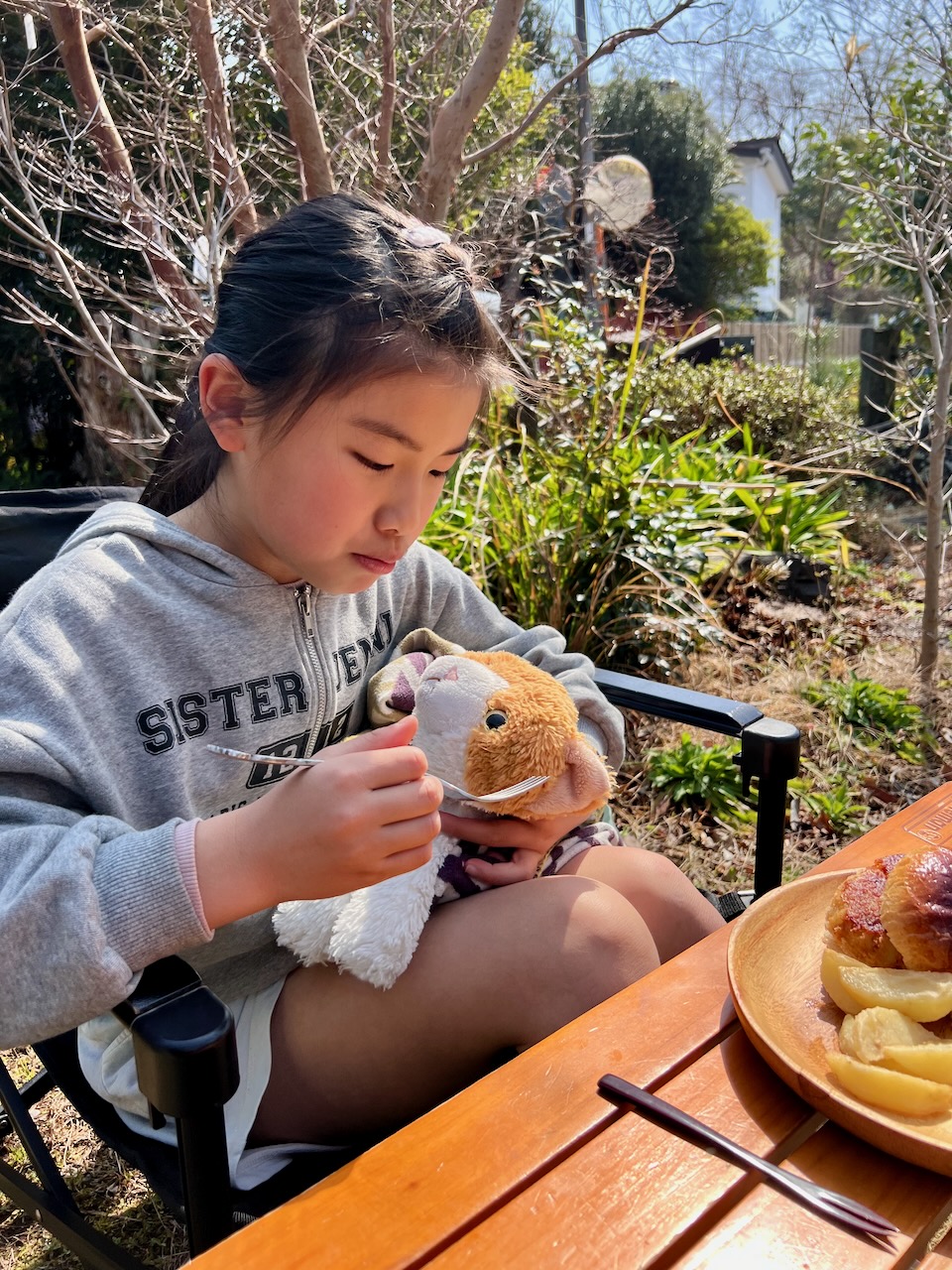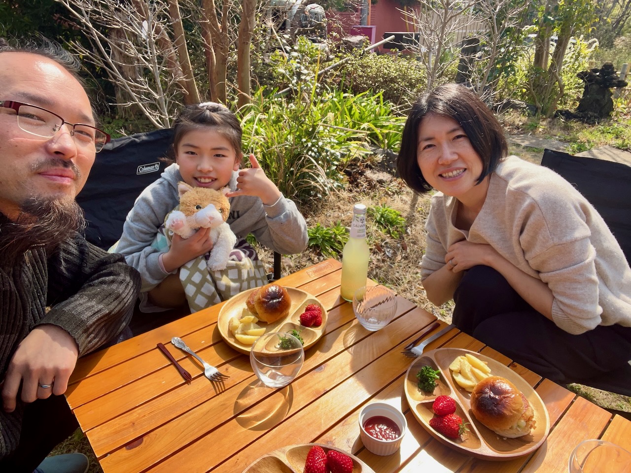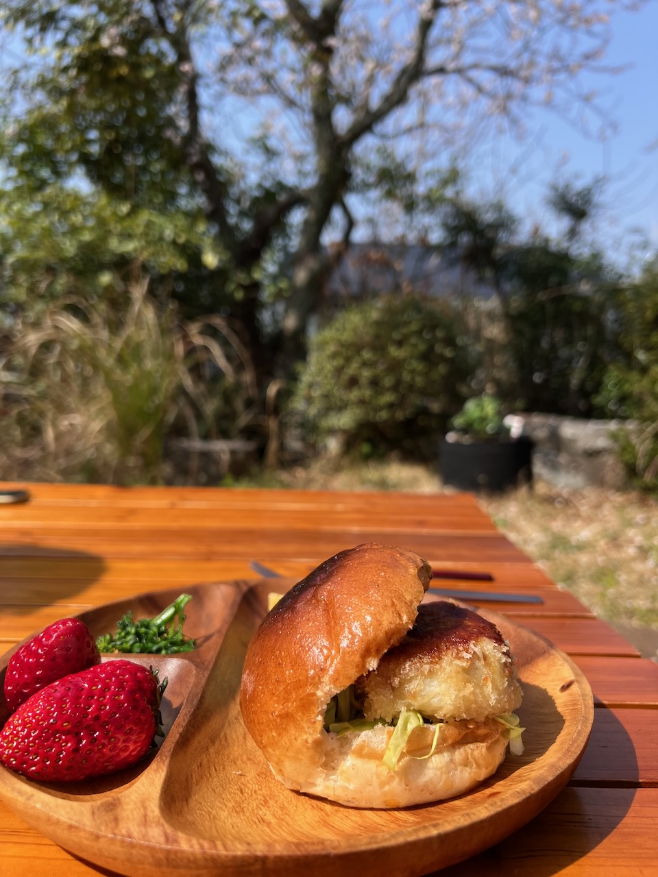 お庭でお花見ピクニック めいさん日記 2025.03.25 3/25(火)、お庭のソメイヨシノが見頃なのでお庭でピクニックをしました。 めいさんはピクニックが大好きなので大喜びで、率先してテーブルや椅子の用意をしてくれました。 お手製コロッケバーガーにフライドポテト、お庭のブロッコリー、静岡産紅ほっぺのランチです。 リモナーターで乾杯。暖かくなってくるとリモナーターが最高です。 猫のポー子ちゃんも一緒にピクニックランチを楽しみました。 コメント