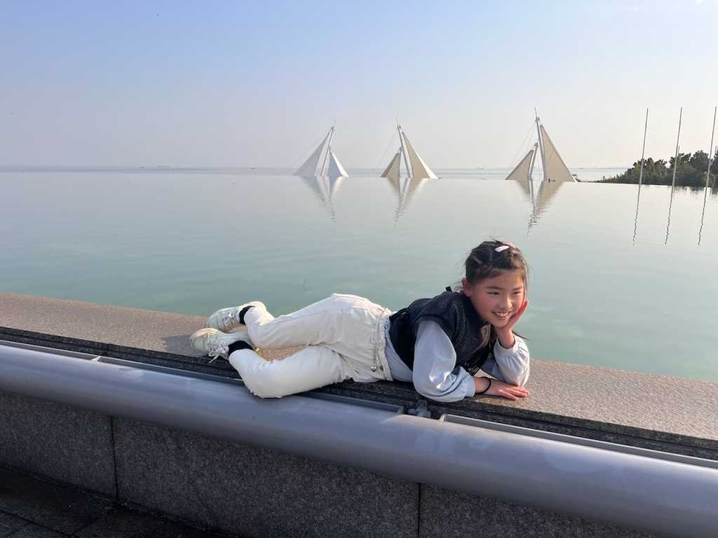 観覧車のてっぺん。めいさんは初めての観覧車と美しい景色を楽しみつつも「少し怖い〜」と言っていました。