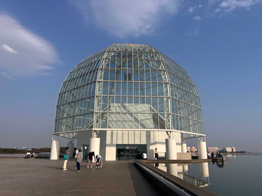 なぎさポニーランドを後にして、葛西臨海水族園へ。海をバックに水族園の建物のシルエットが美しかったです。